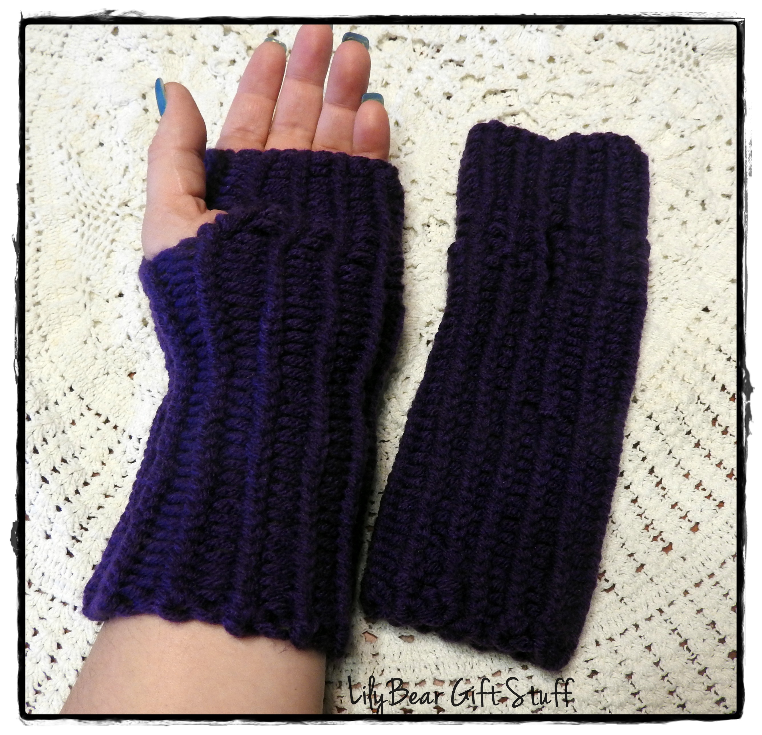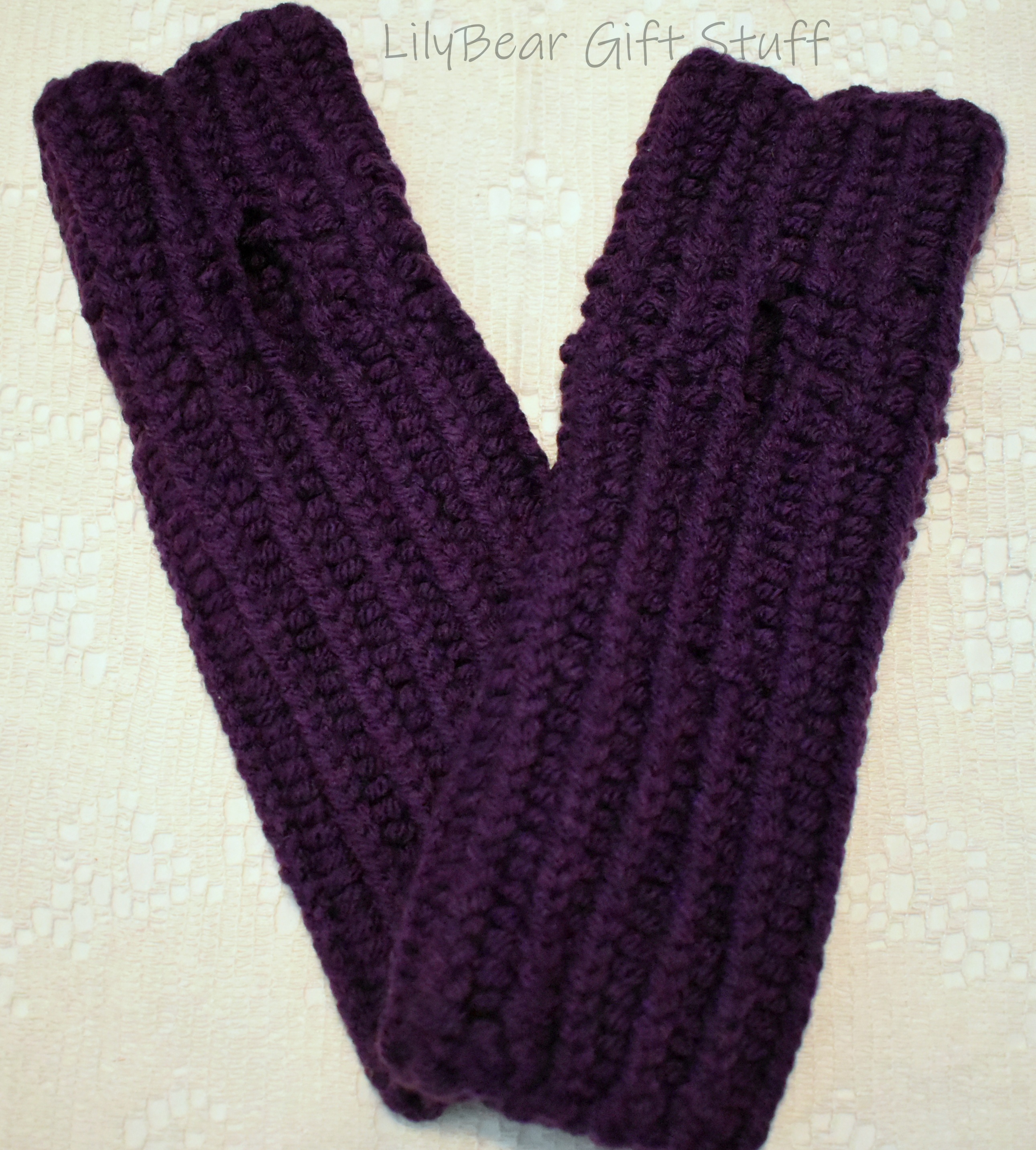 Grape Purple Fingerless Gloves, Loom Knit