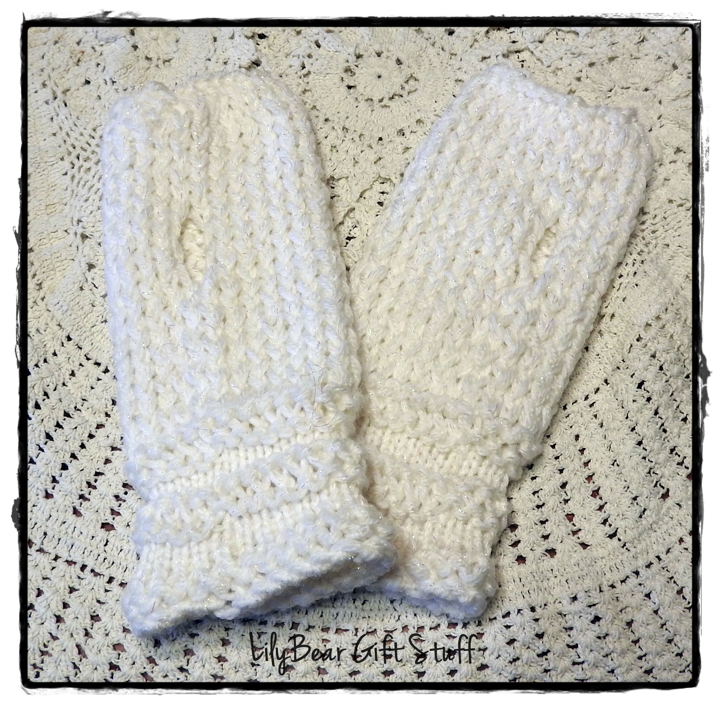 White with Sparklys Fingerless Gloves, Loom Knit