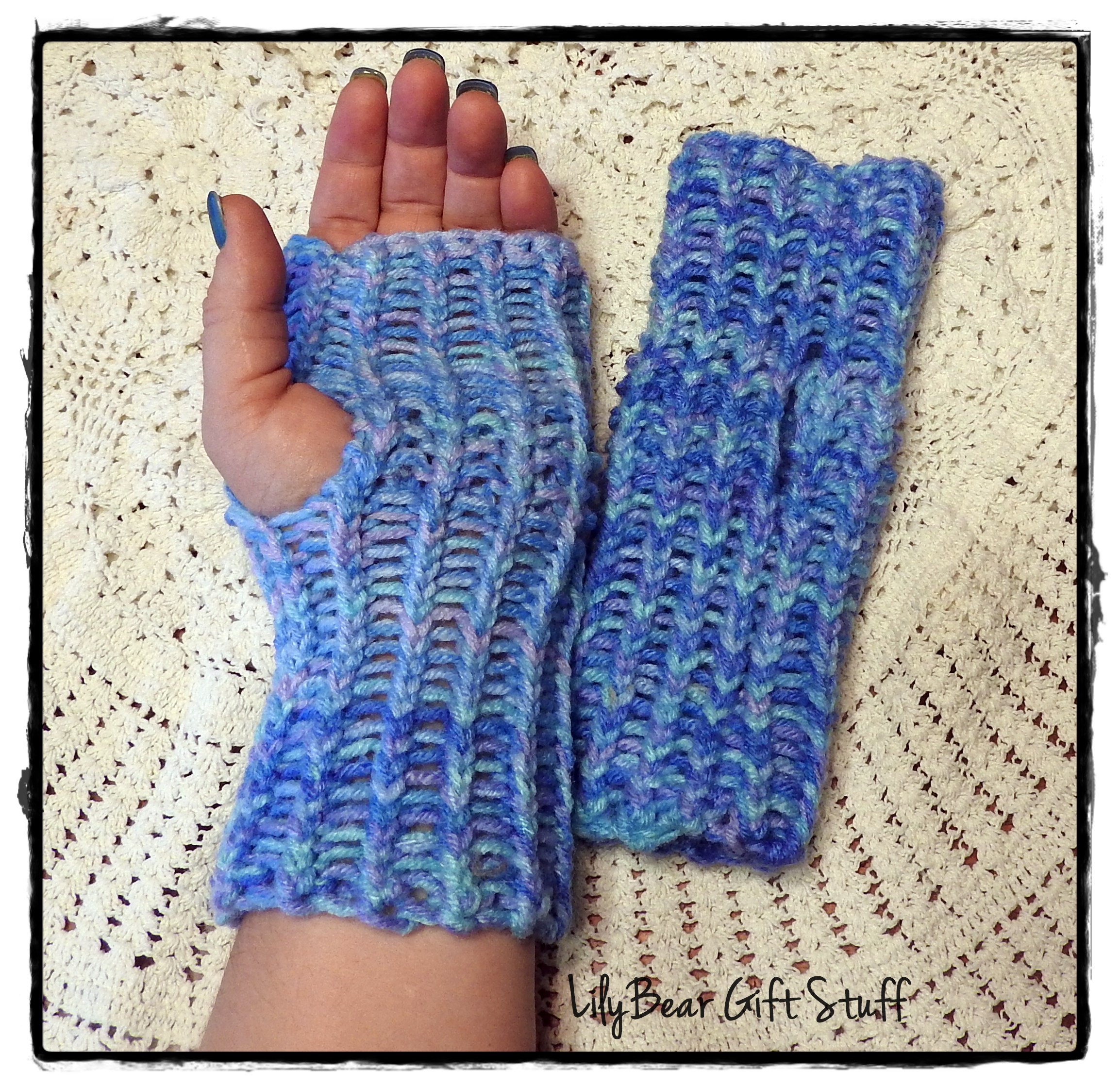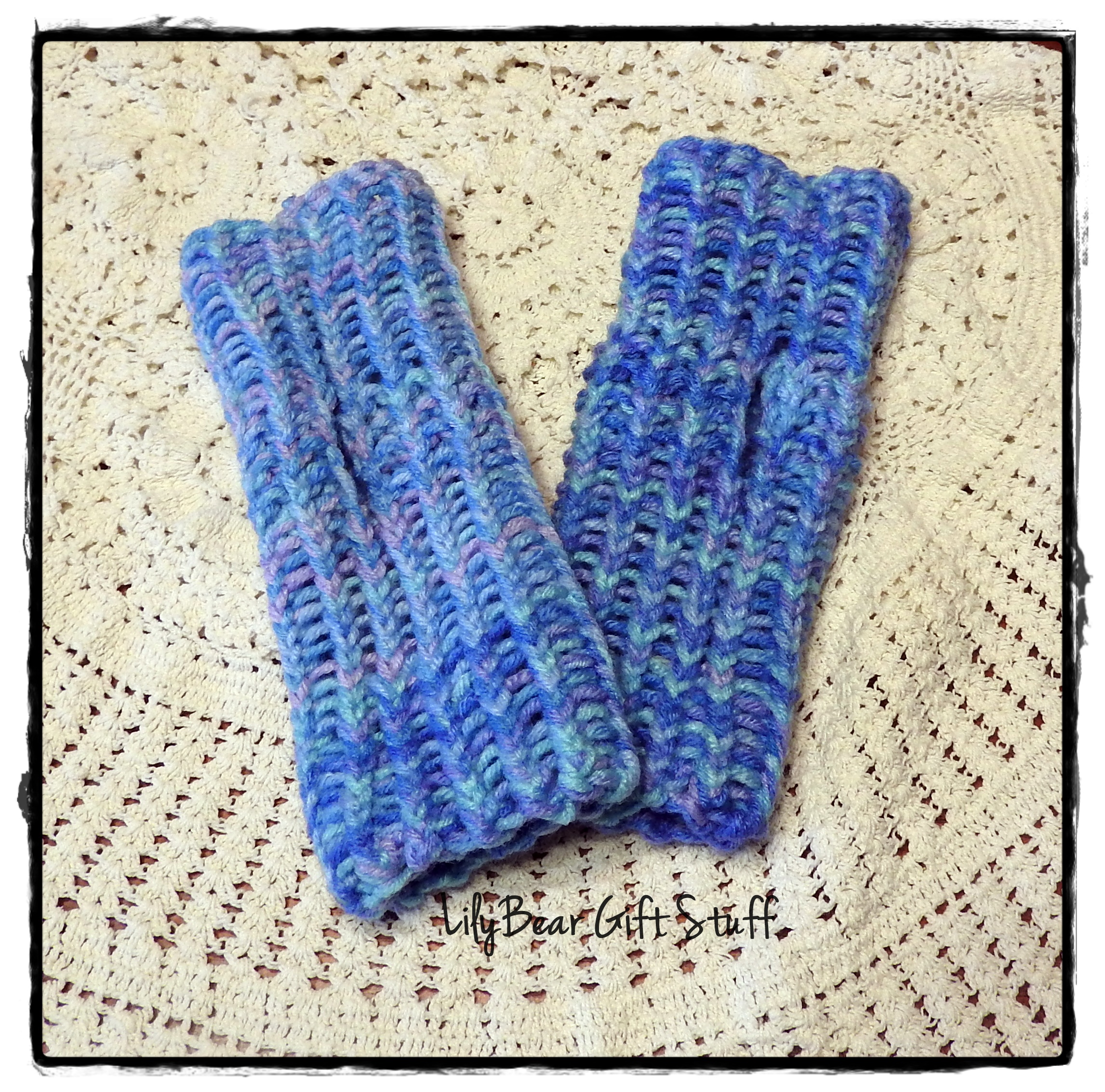 Blue and Pastel Colors Fingerless Gloves, Loom Knit