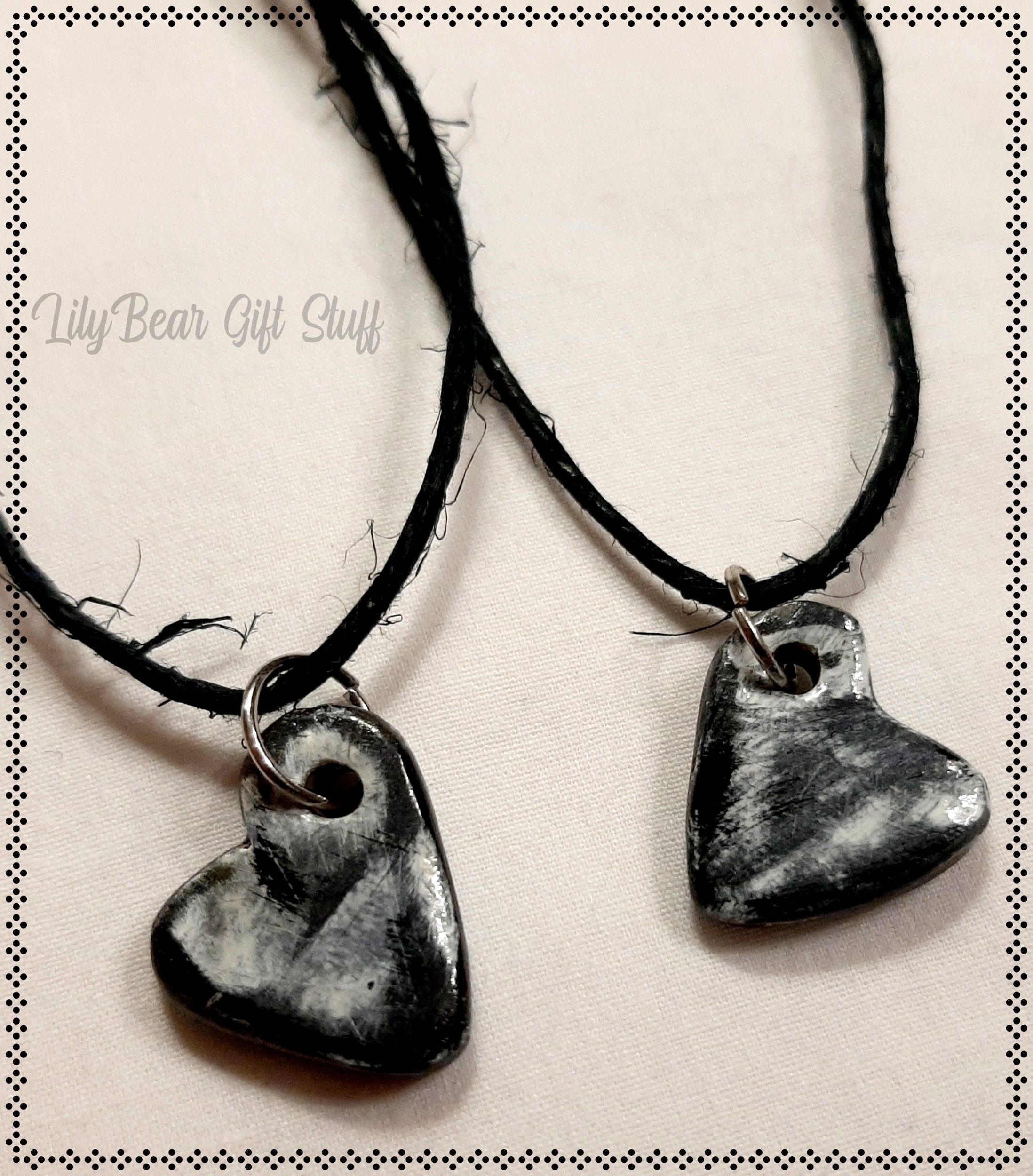 BFF Black with white teeny hearts, Polymer clay, Necklaces