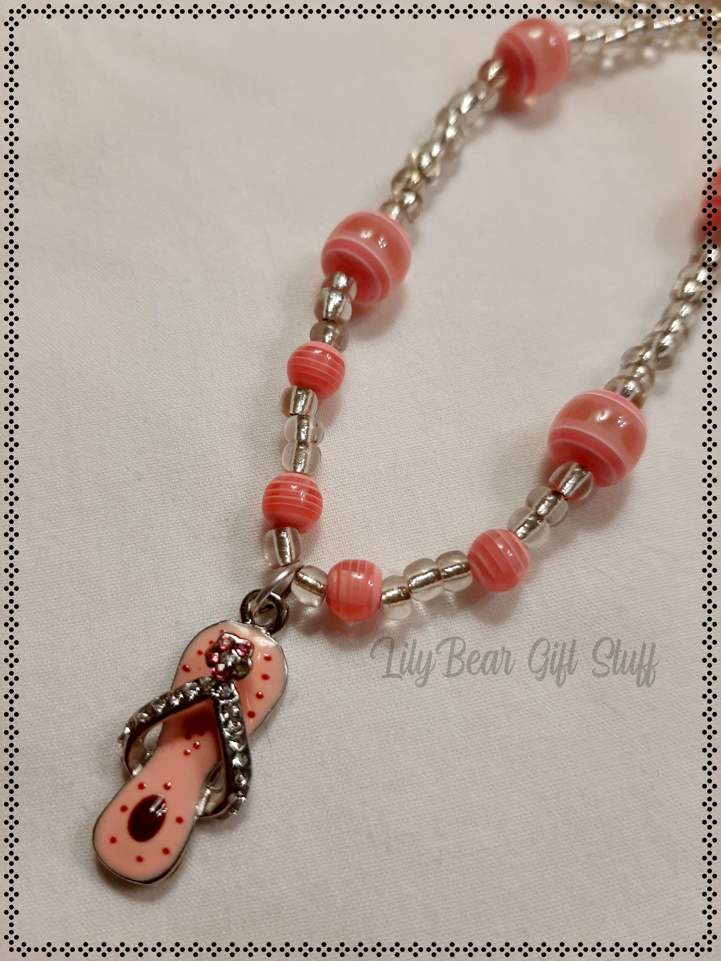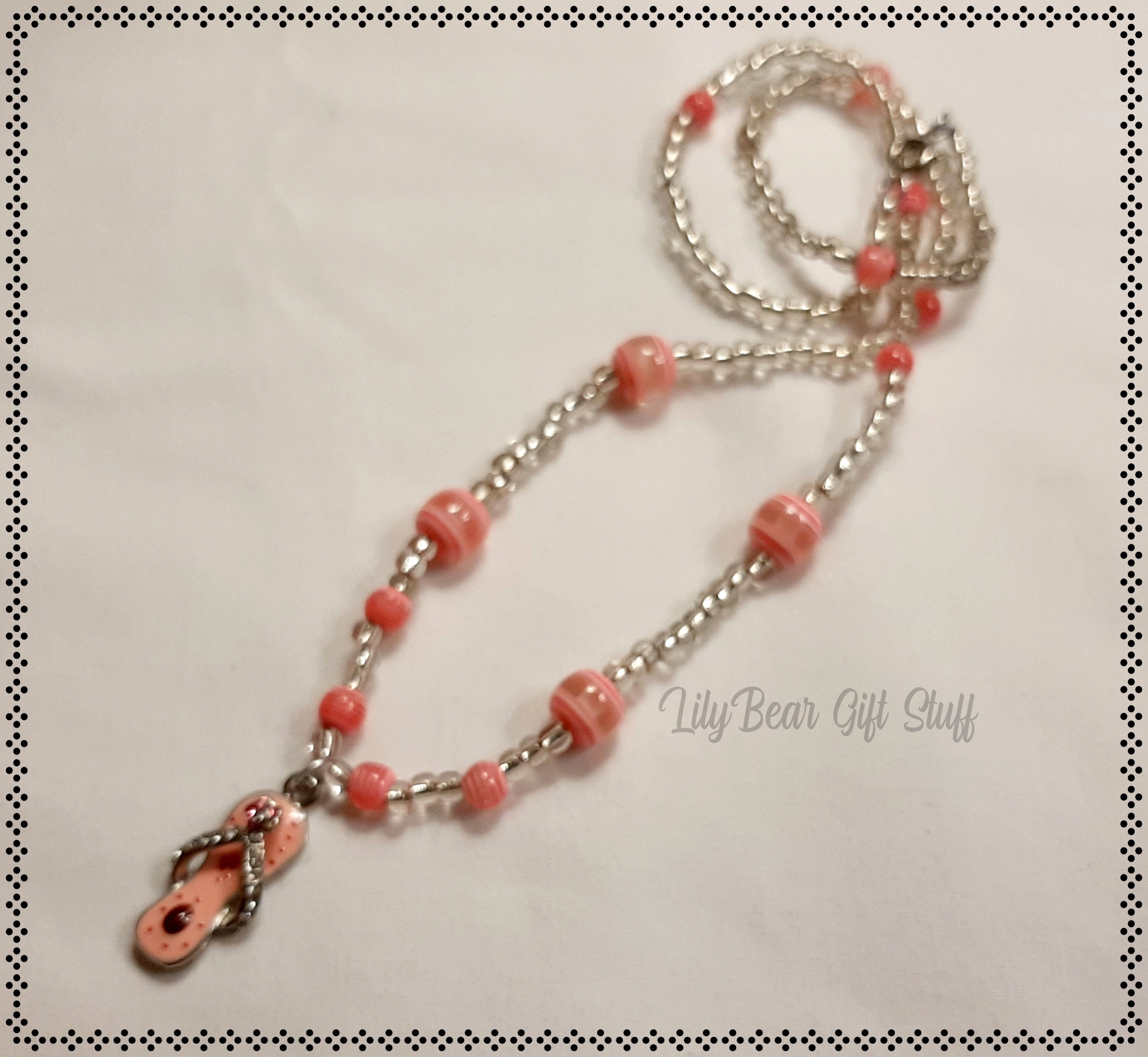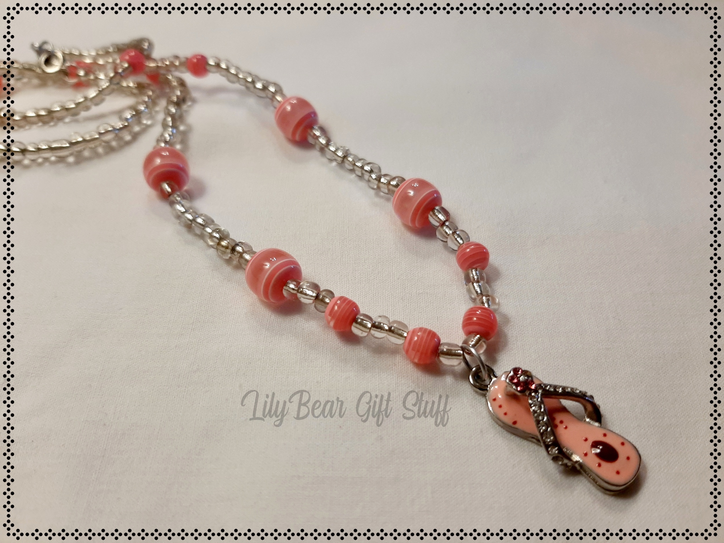 A cute and simple Necklace made with pink glass beads and clear seed beads!