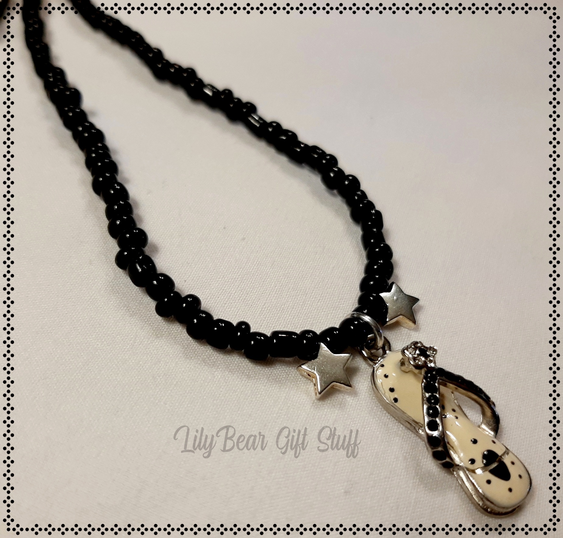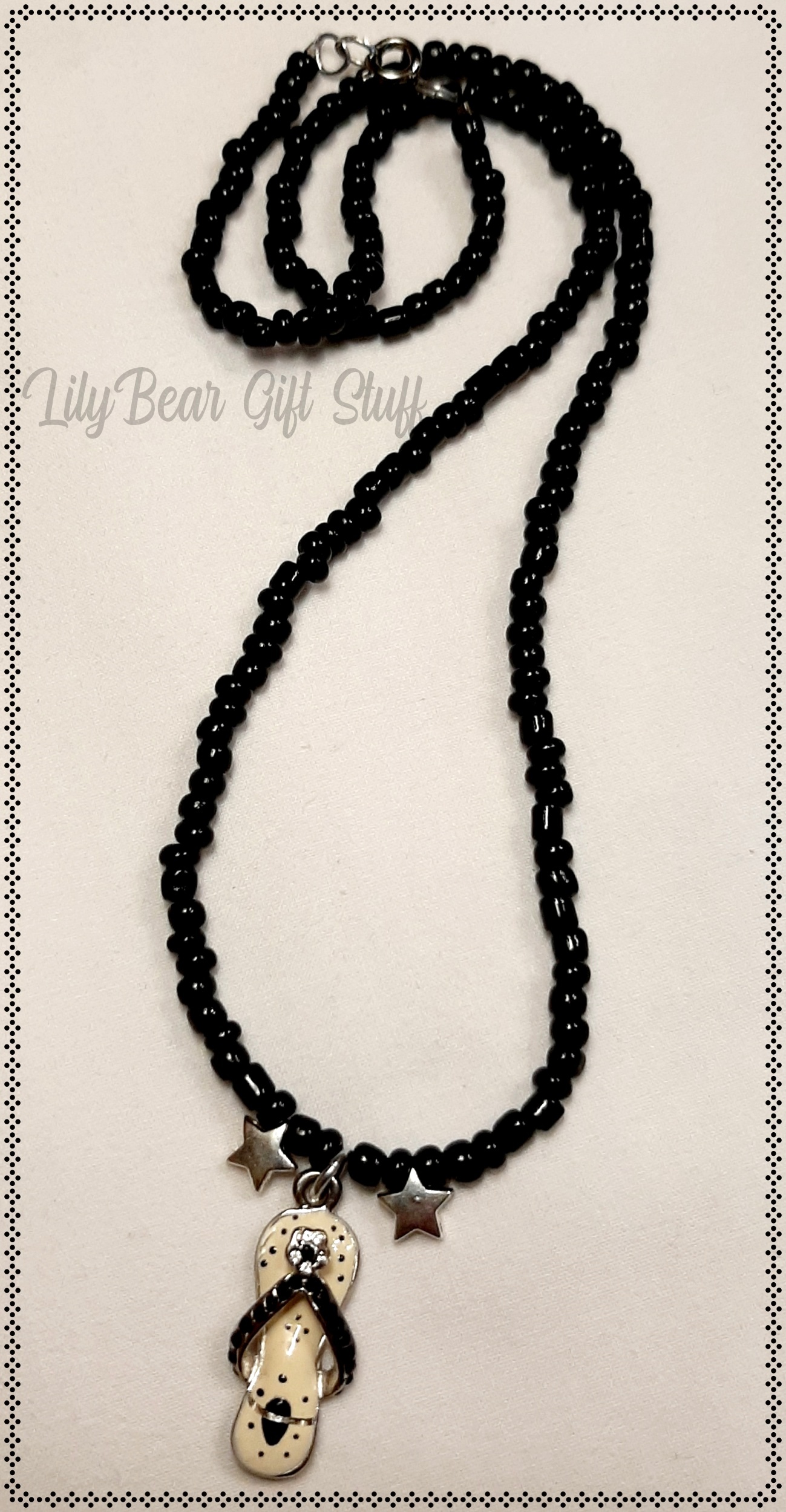 A cute and simple Necklace made with black seed beads and 2 silver star charms.