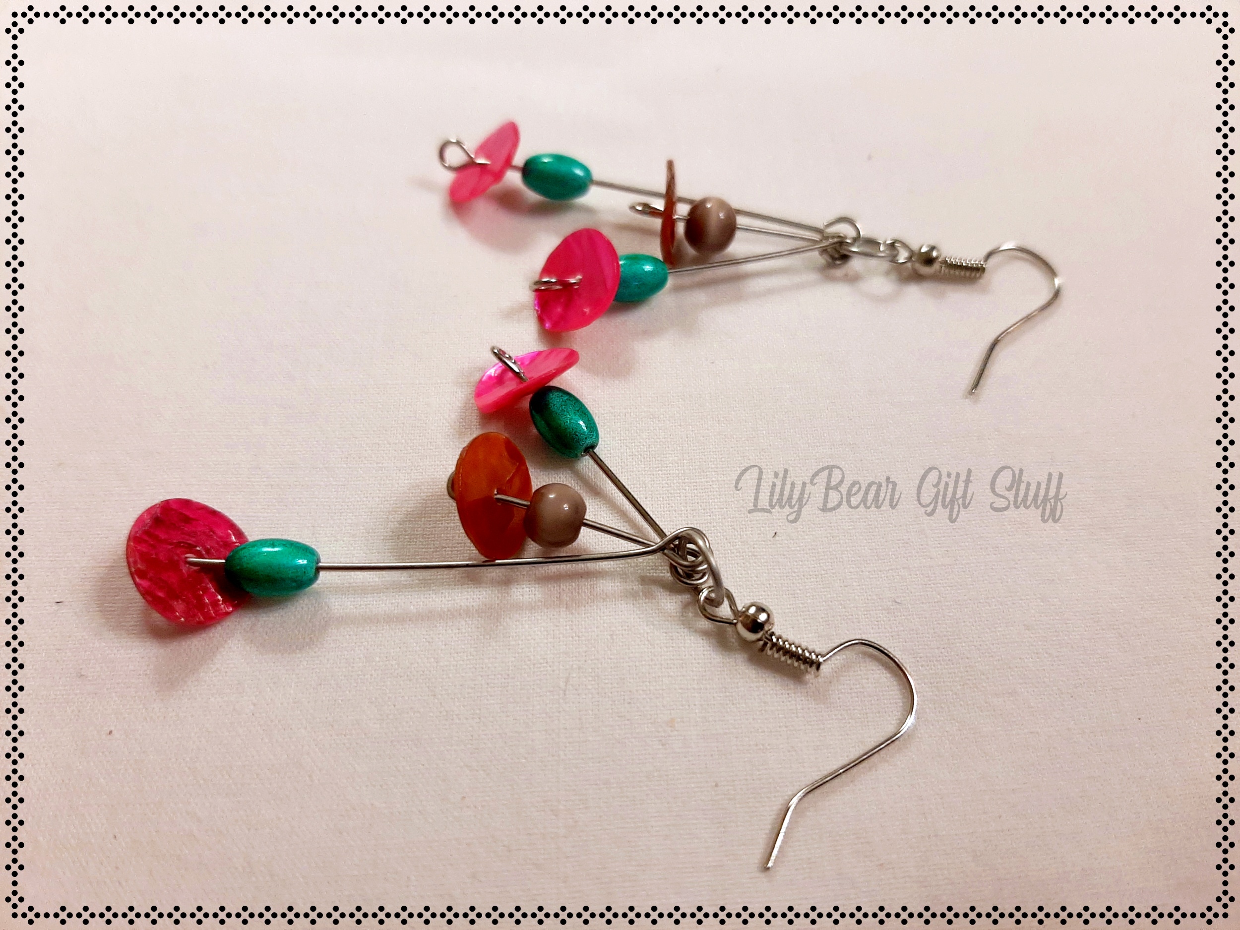 Cute and simple pair of Earrings, made with tiny pink shells and blue glass beads