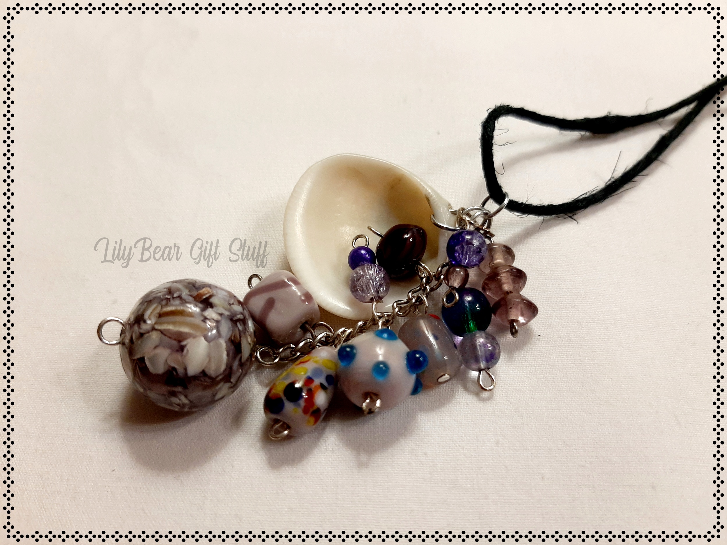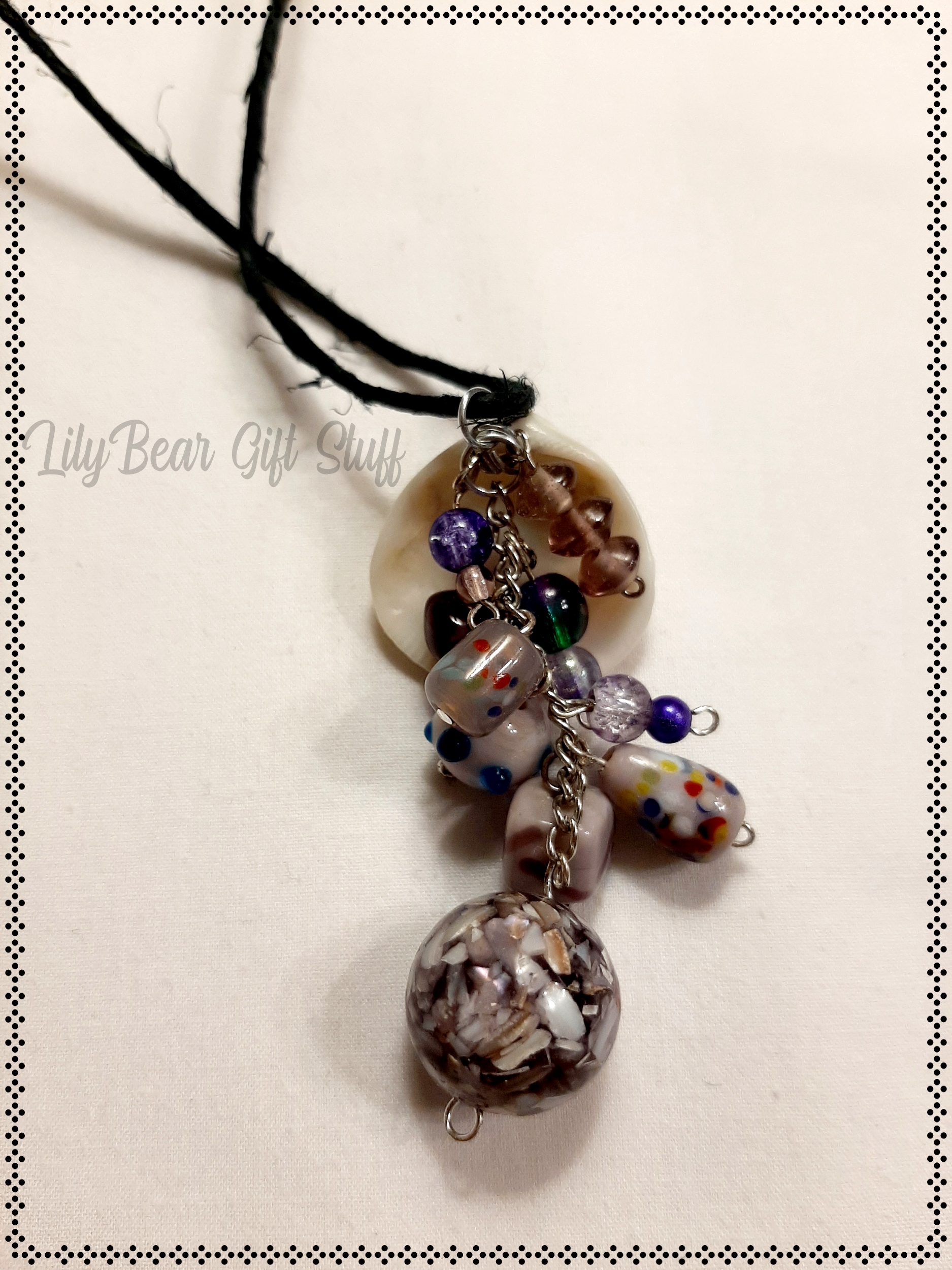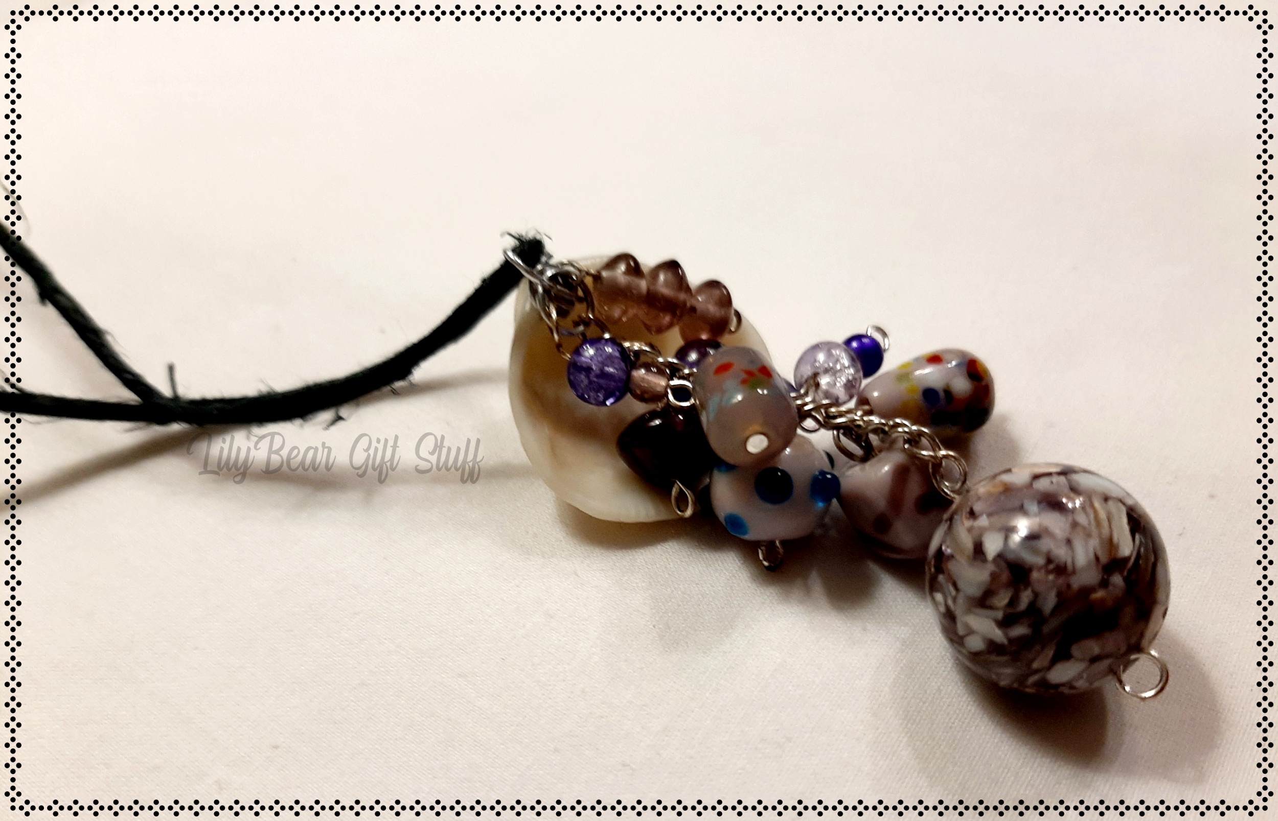 A cute and simple Necklace made with different purple beads and a cute little sea shell.