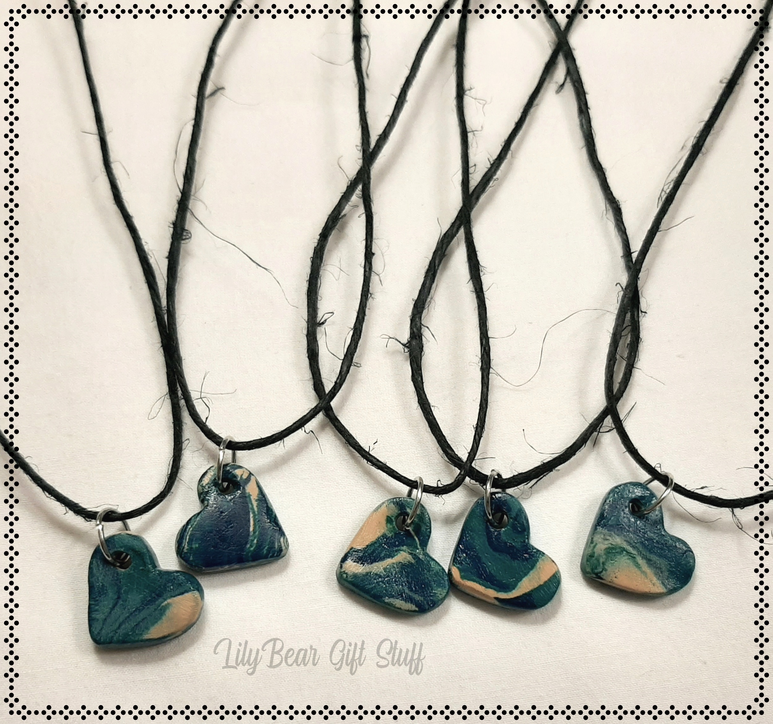 Blue Hearts wth wihte swirls, Polymer clay, Necklaces