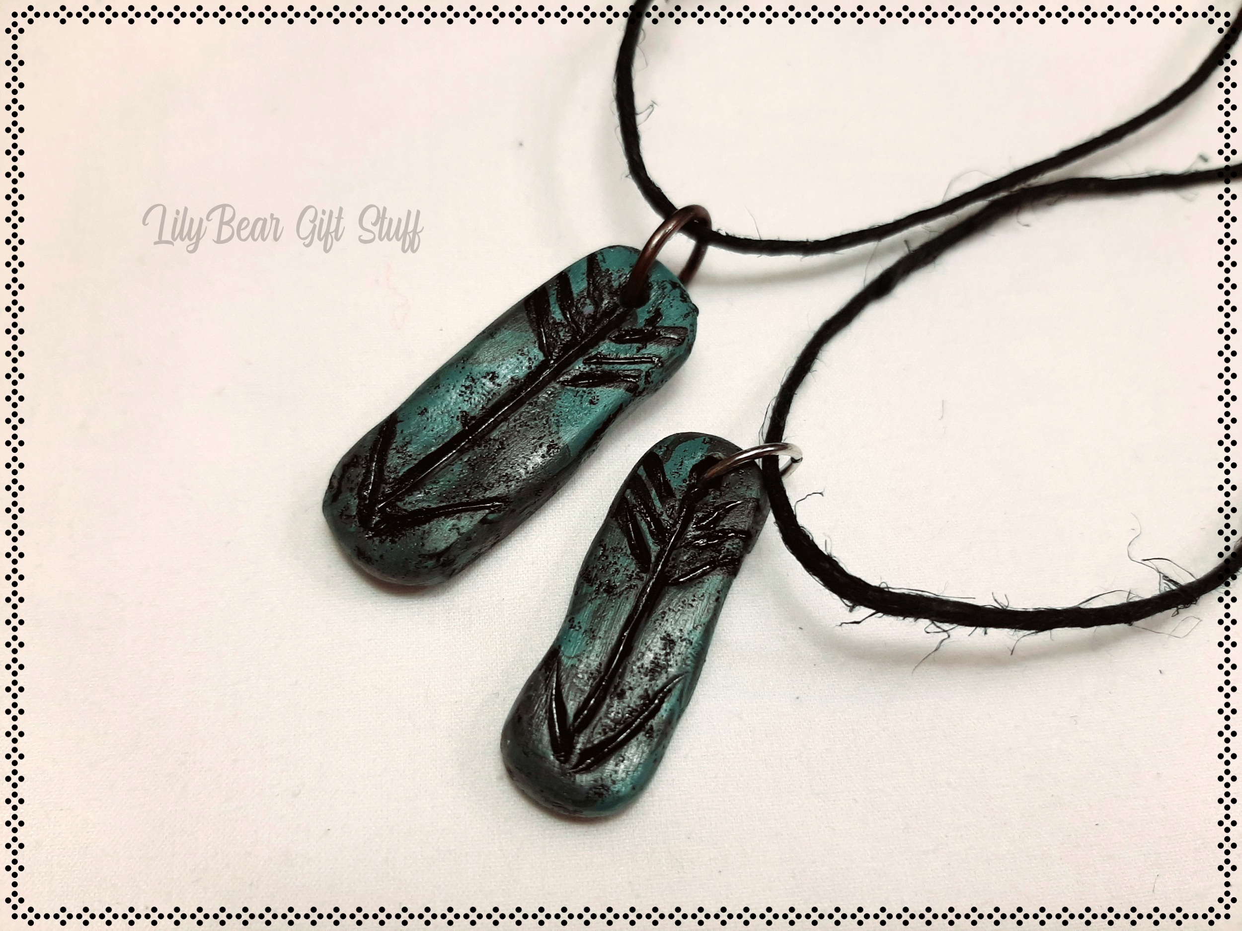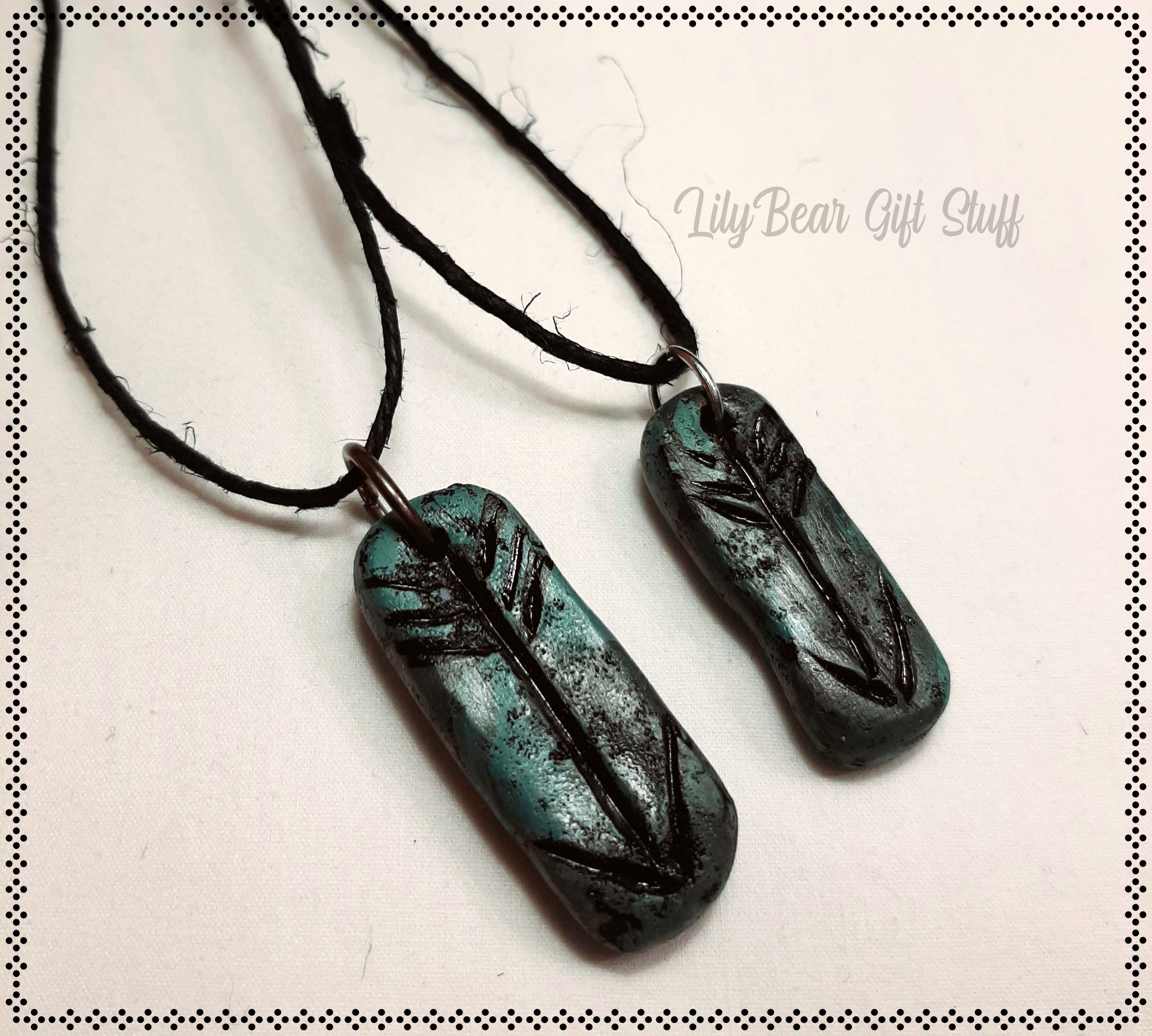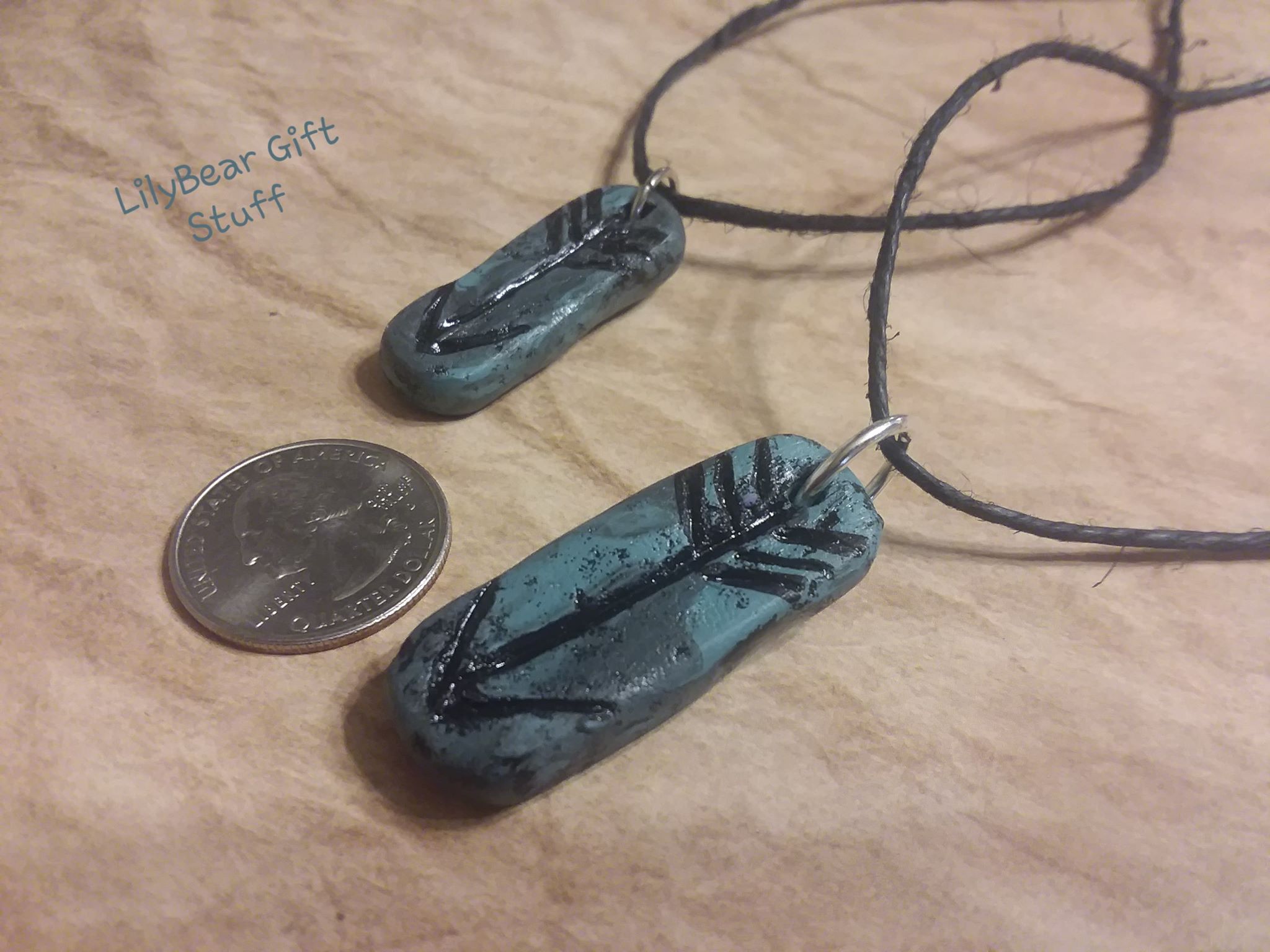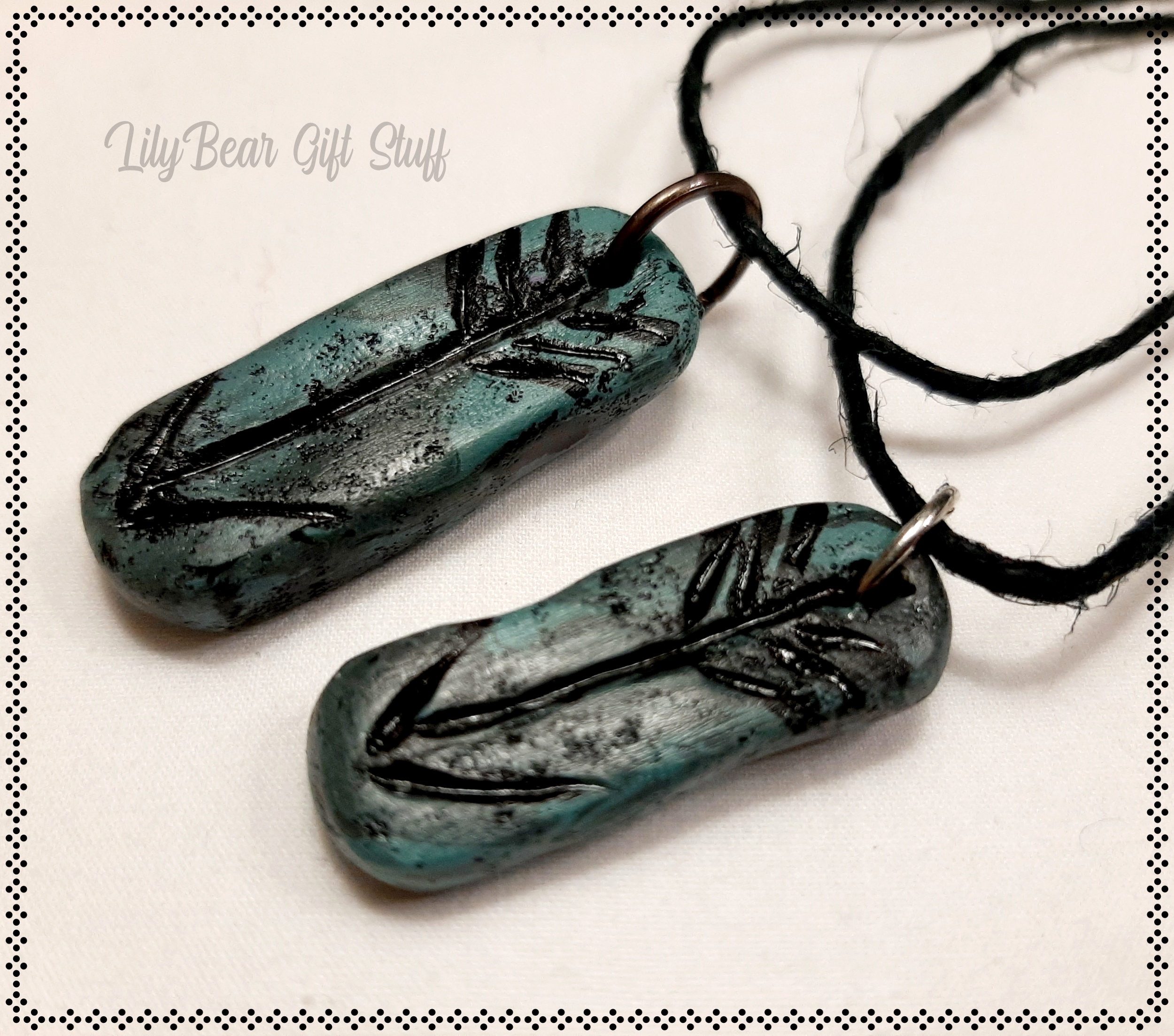 A cute and simple Necklace made with light blue polymer clay and an arrow etched into it! Its made to look old.