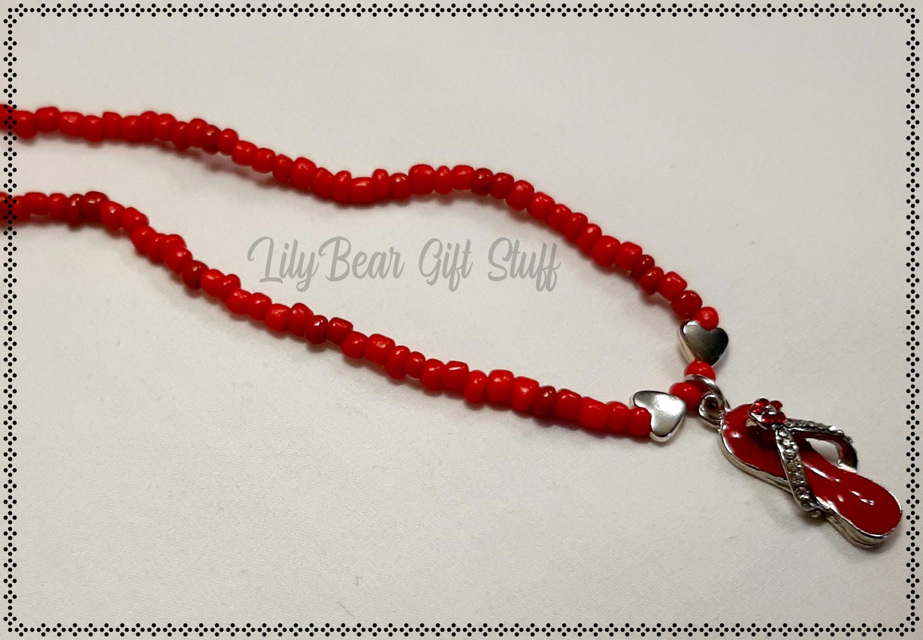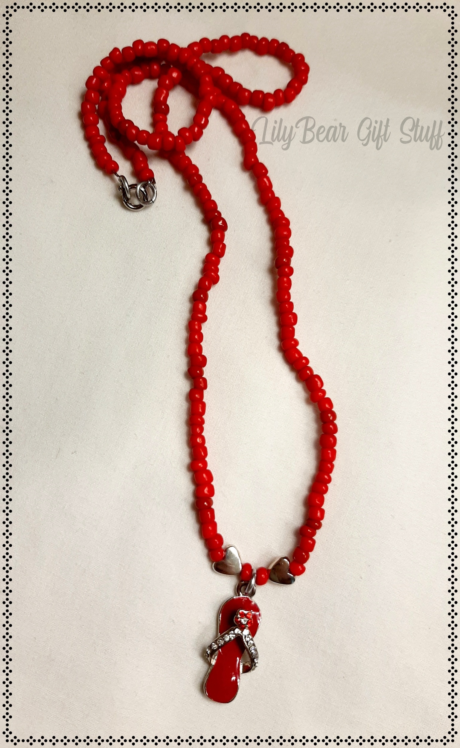 A cute and simple Necklace made with red seed beads and 2 silver heart charms.