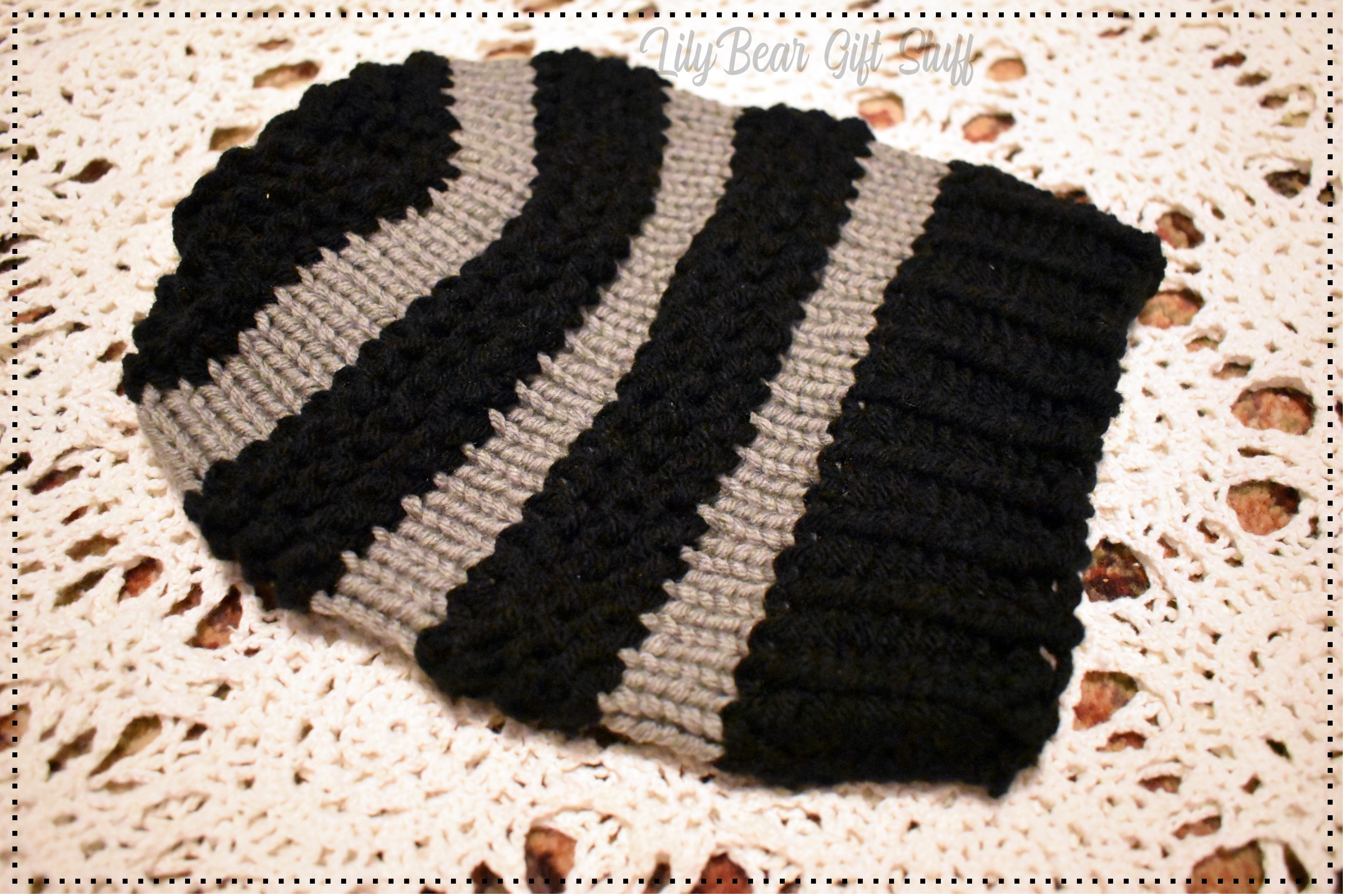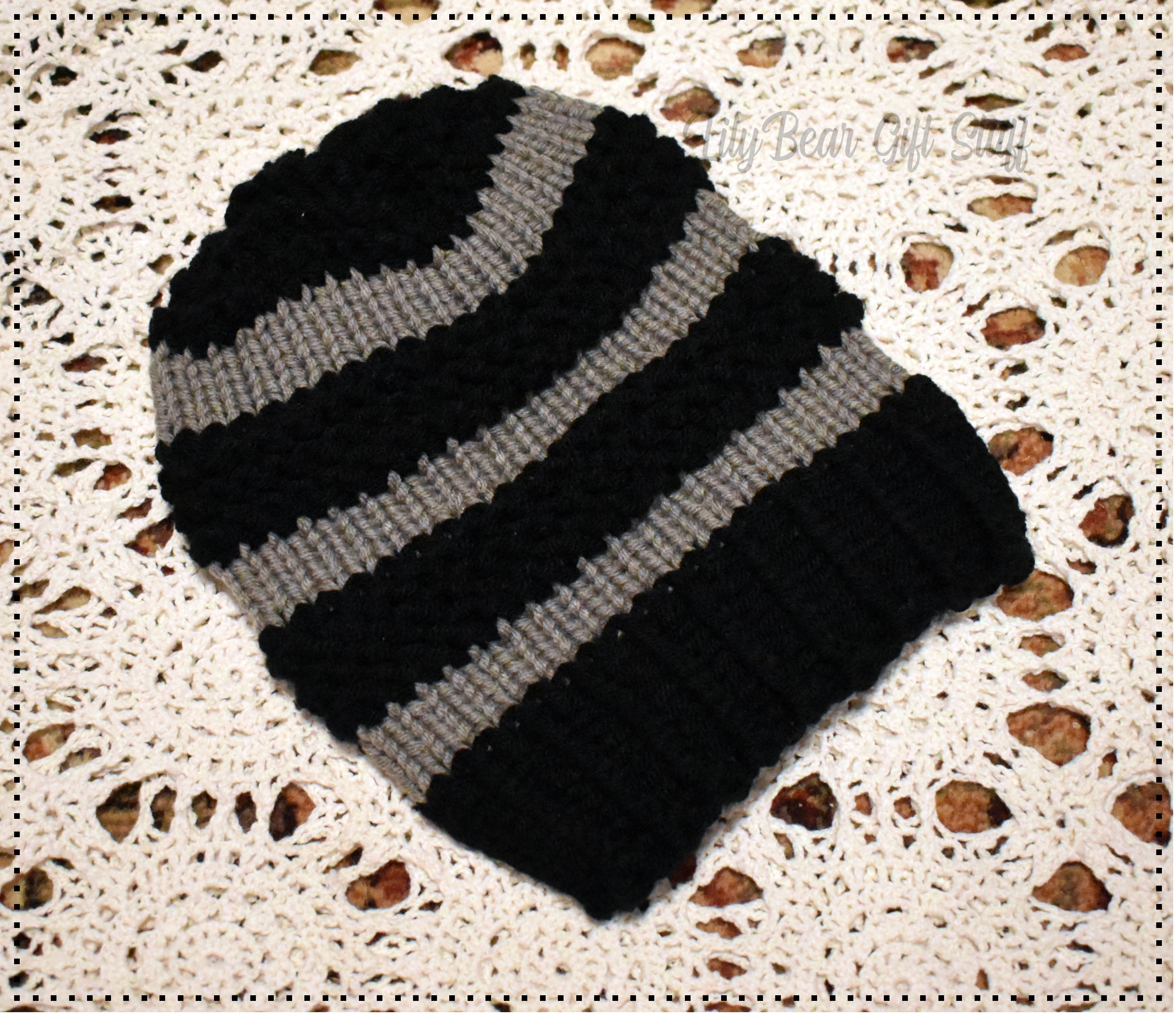 Very comfy and warm, this loom knit hat is adult sized. It will keep your head cozy!