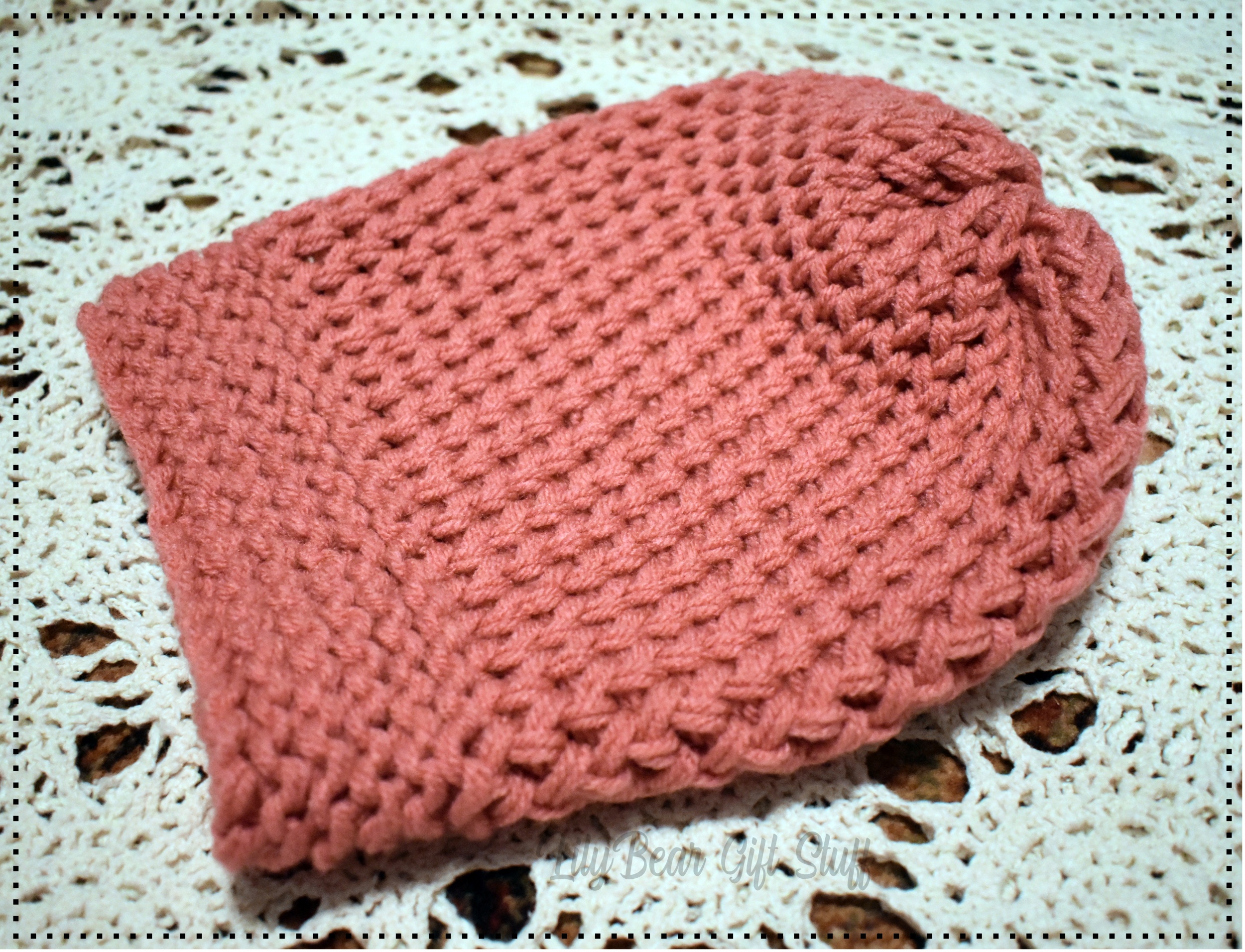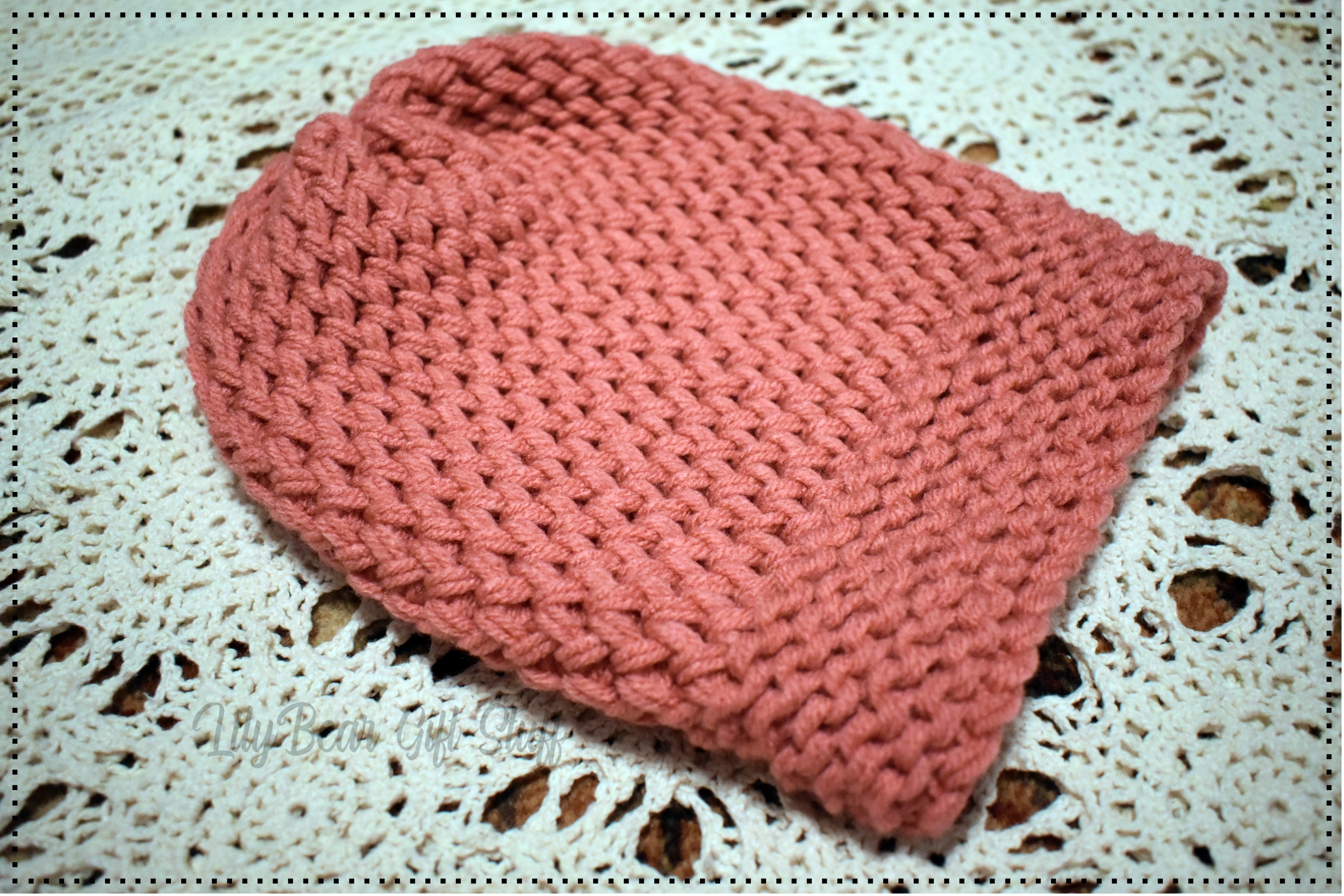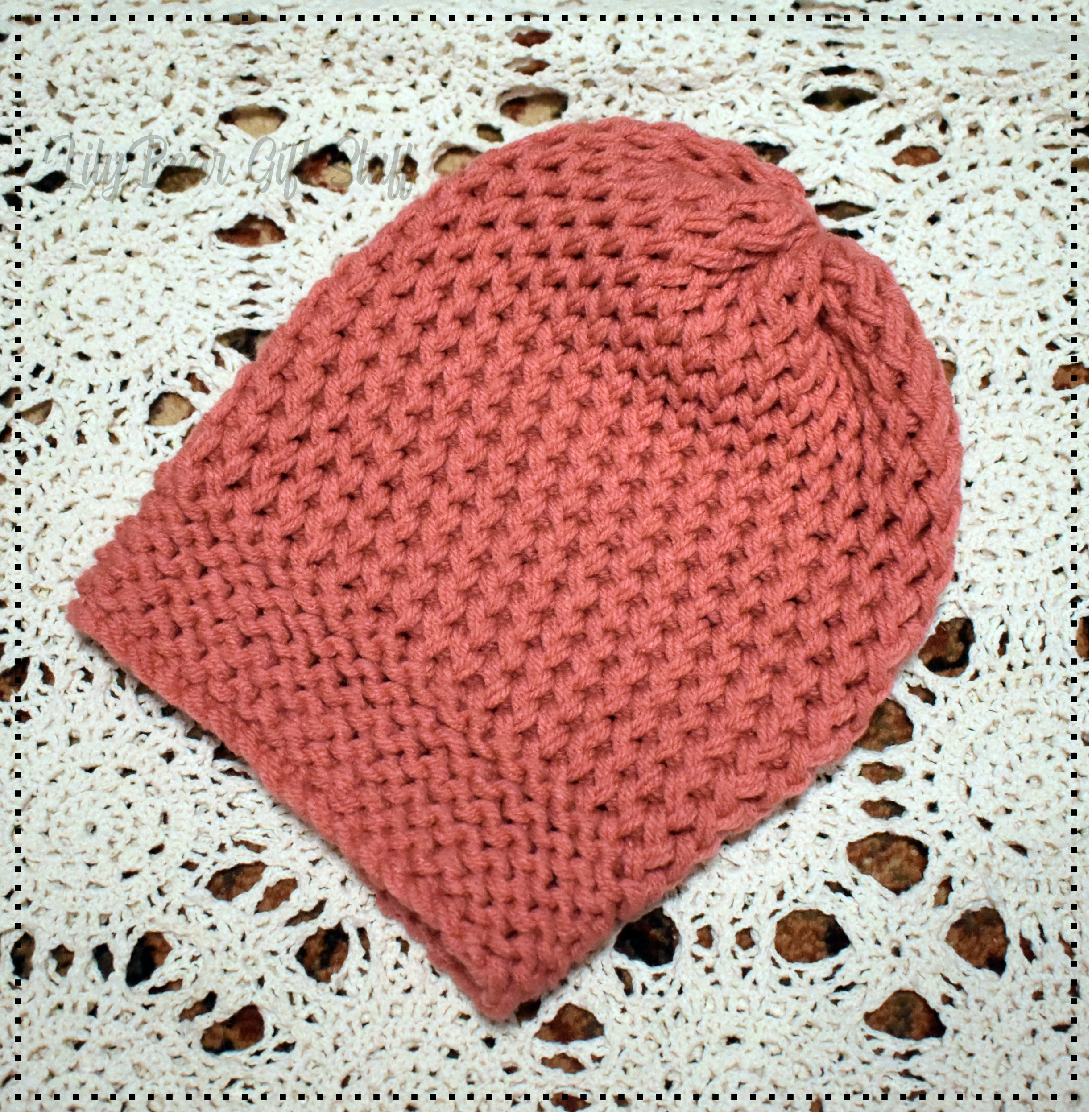 Very comfy and warm, this loom knit hat is adult sized. It will keep your head cozy!