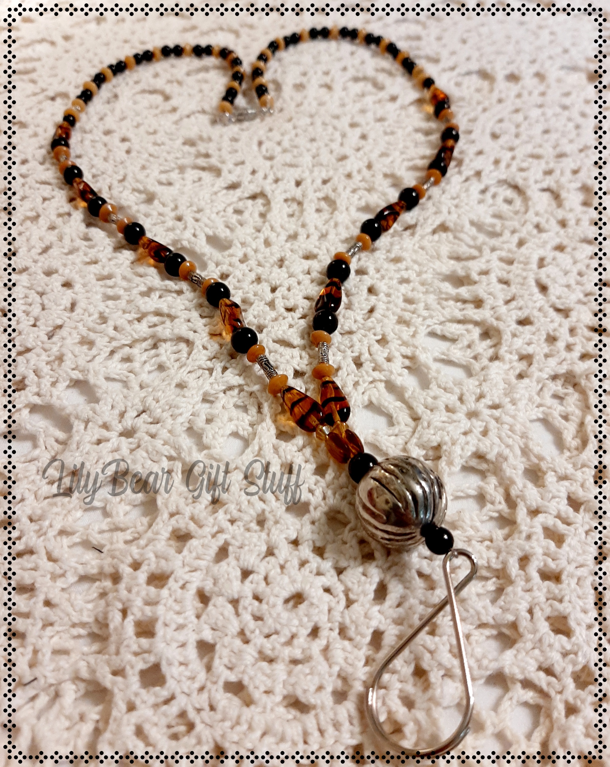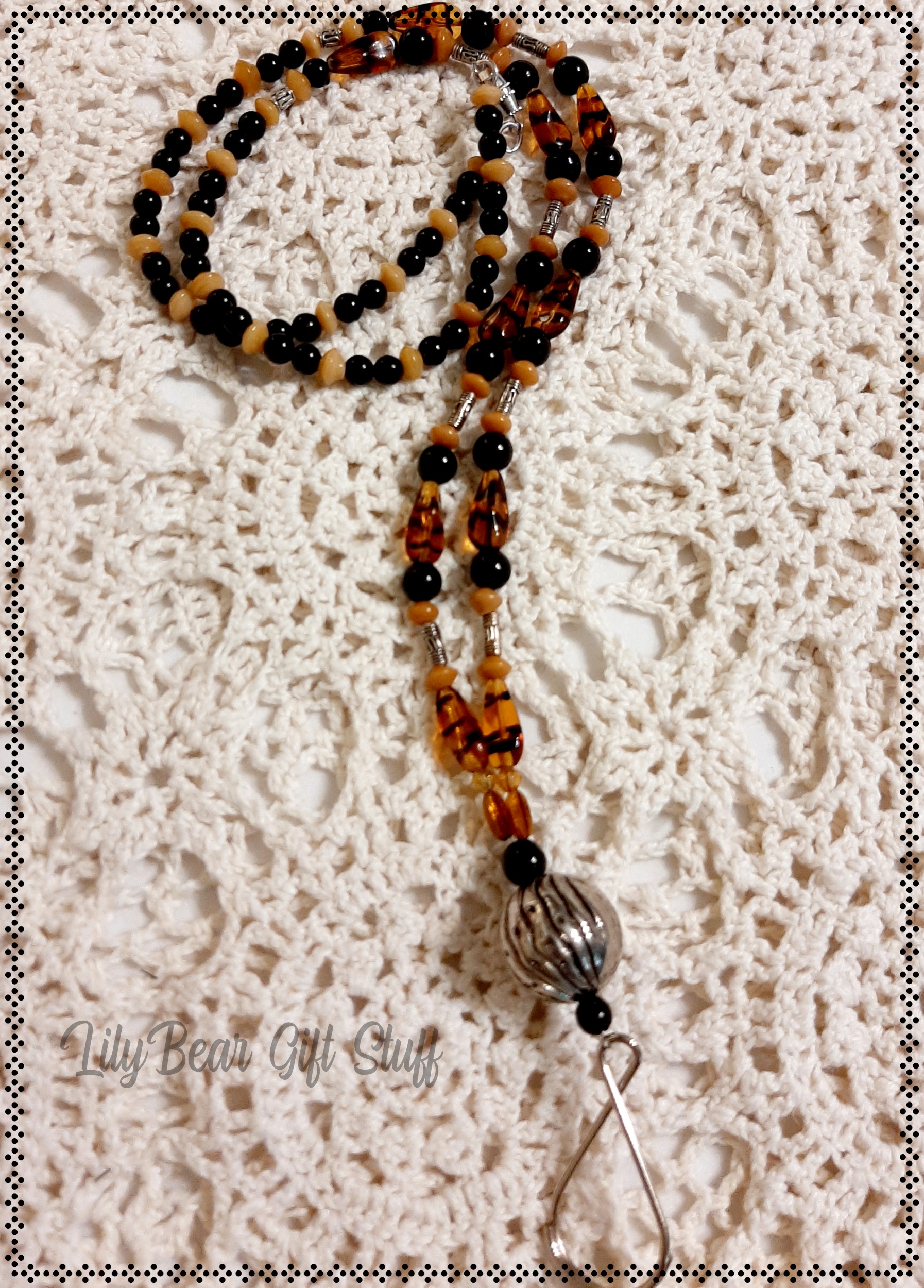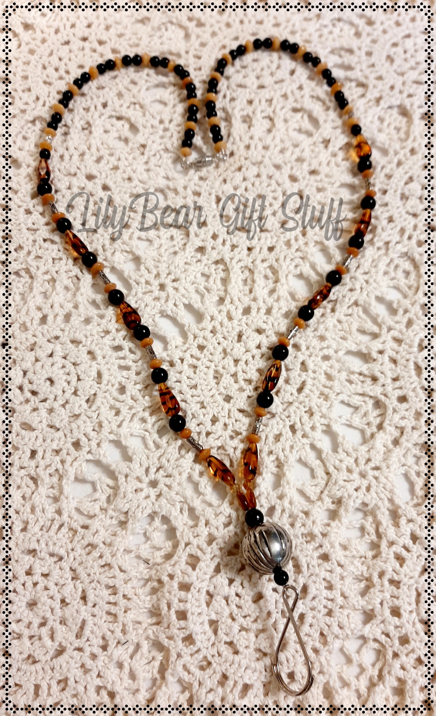 A cute and simple Lanyard made with black and brown glass and acrylic beads!