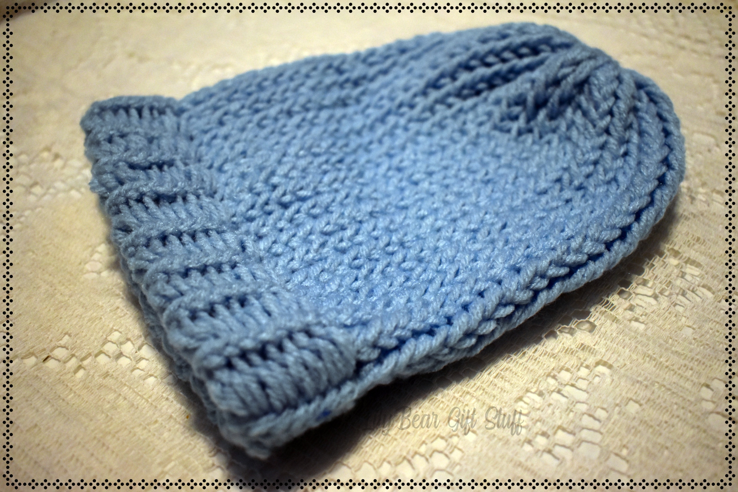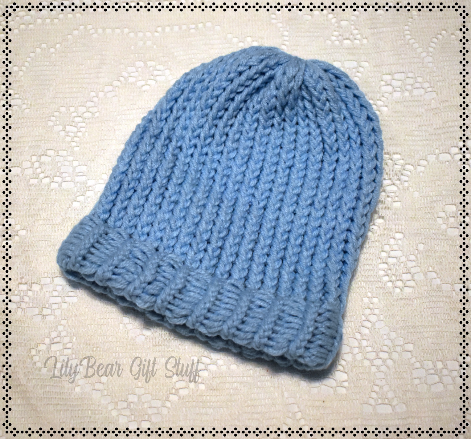 Very comfy and warm, this loom knit hat is a toddler size and comes in a light blue colors. It will keep your toddler's head cozy!