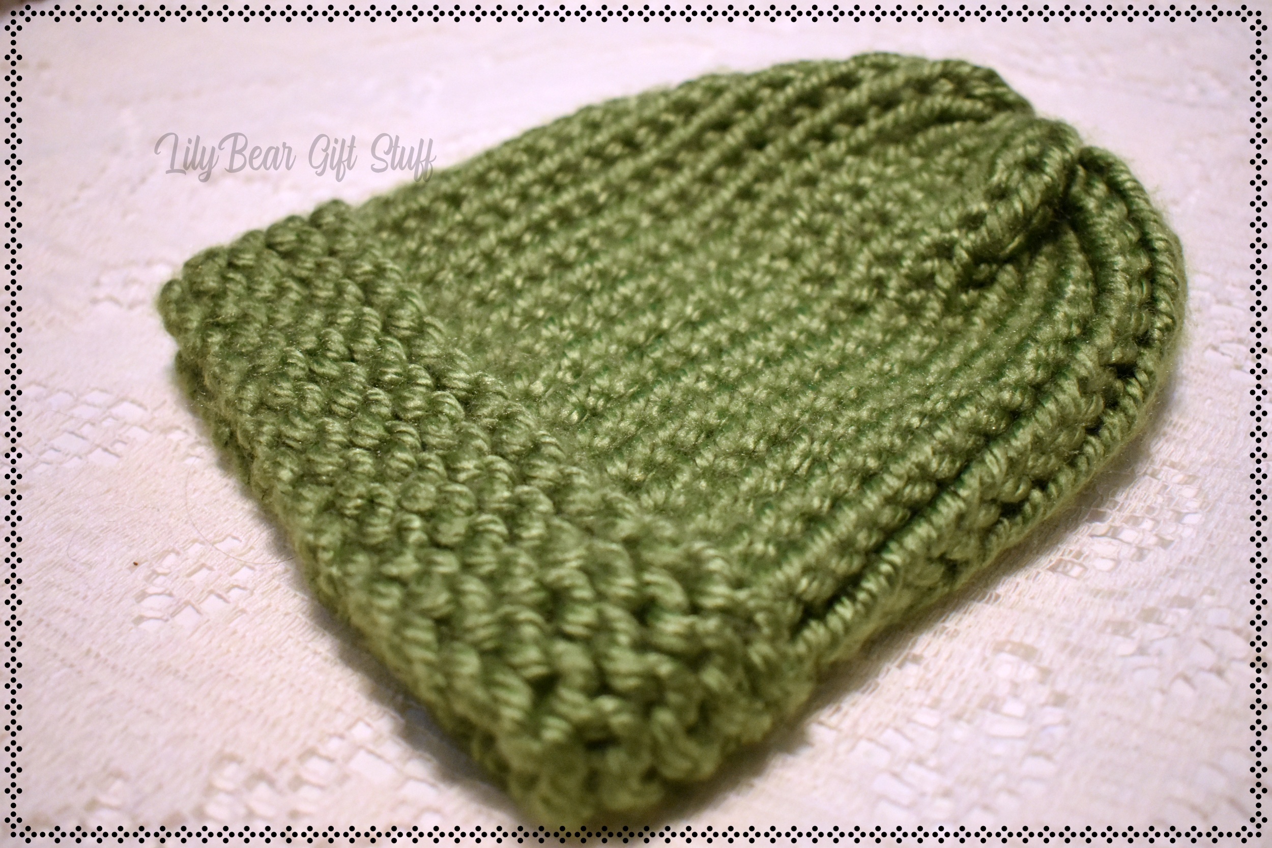 Very comfy and warm, this loom knit hat is a toddler size and comes in a sage green color. It will keep your toddler's head cozy!