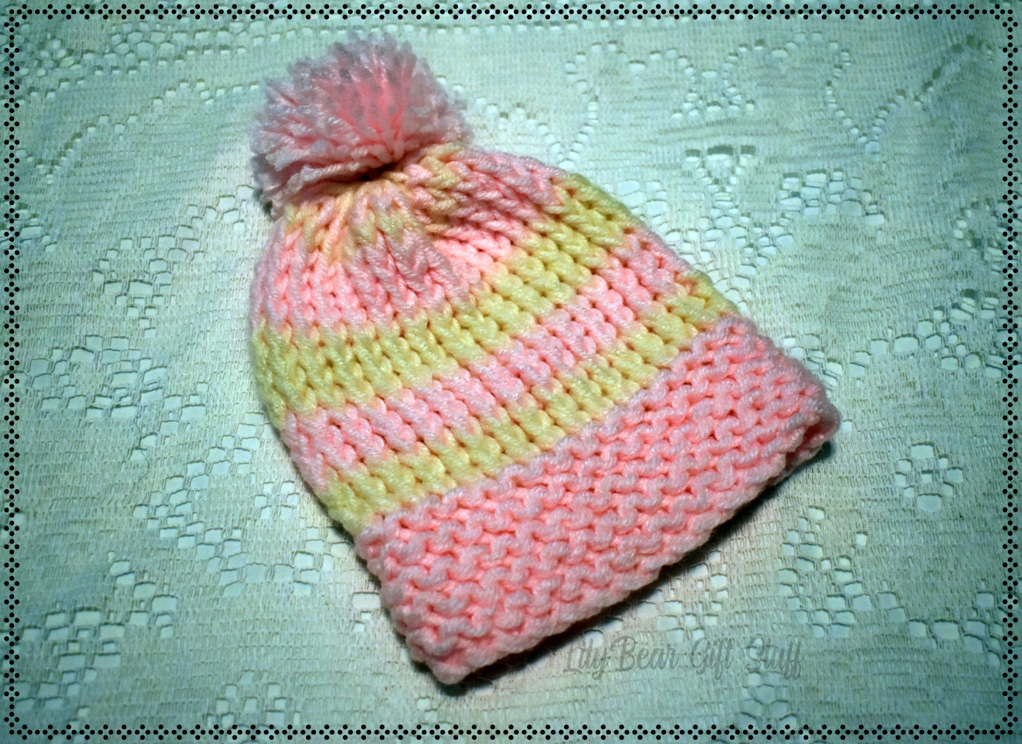 Pink and Cream Newborn to 3 month Winter Hat, Loom Knit