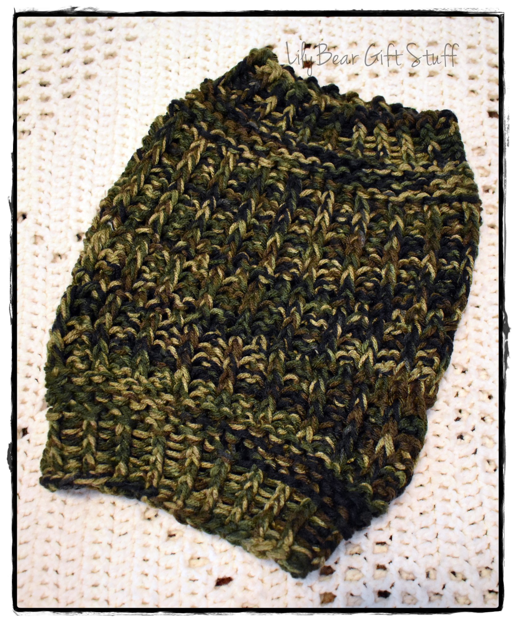 Very comfy and warm around the neck! this loom knit Cowl is an Adult/Teen size and comes in a camo colors. It will keep your neck and chin cozy!