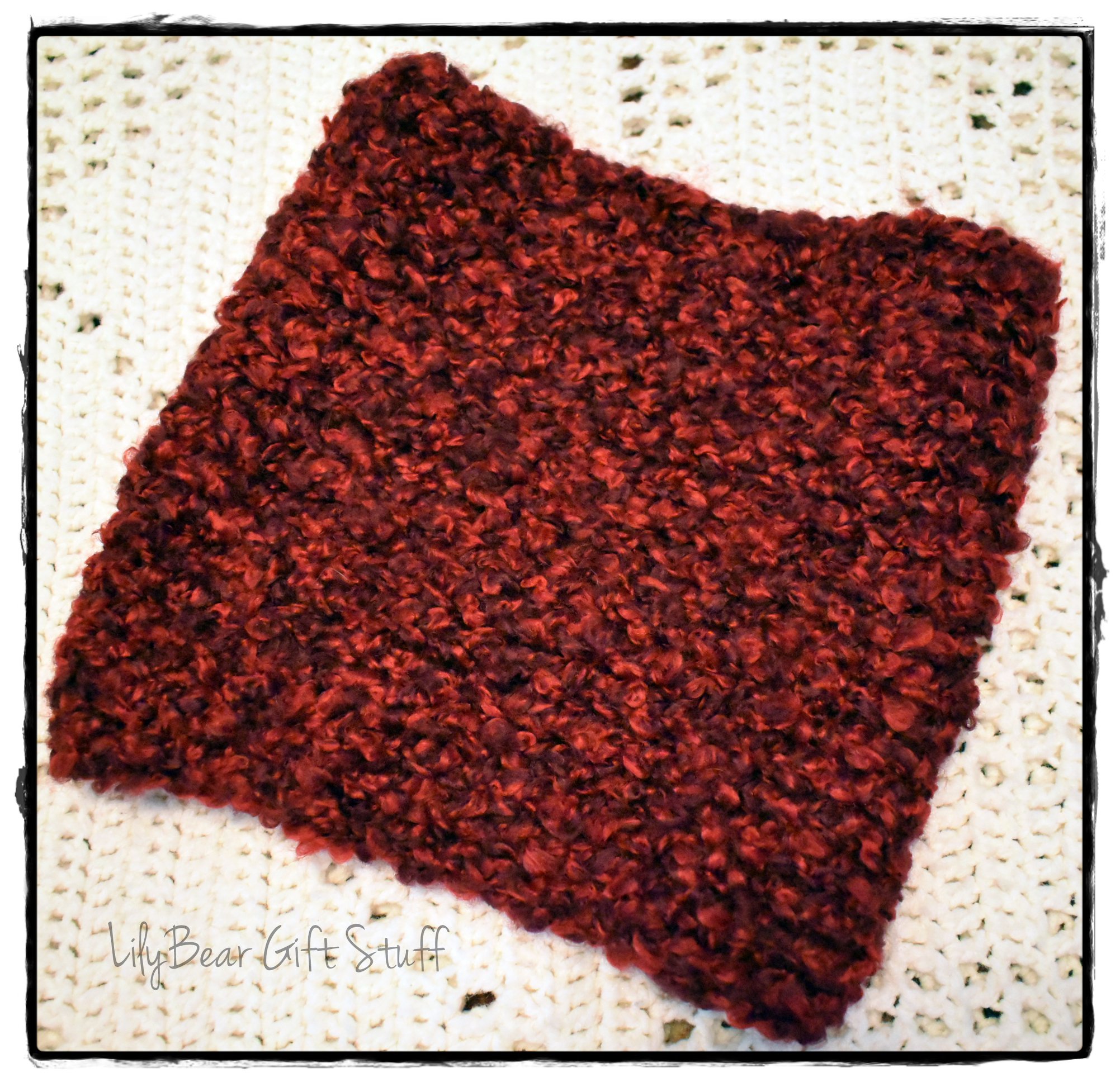 Very comfy and warm around the neck! this loom knit Cowl is an Adult/Teen size and comes in a red color. It will keep your neck and chin cozy!