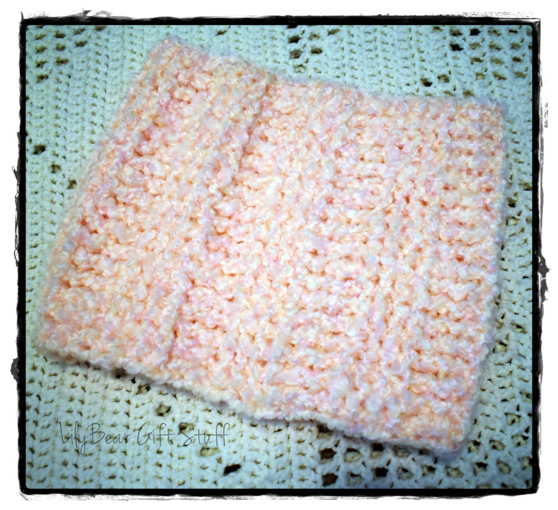 Very comfy and warm around the neck! this loom knit Cowl is an Adult/Teen size and comes in a pink and yellow colors. It will keep your neck and chin cozy!