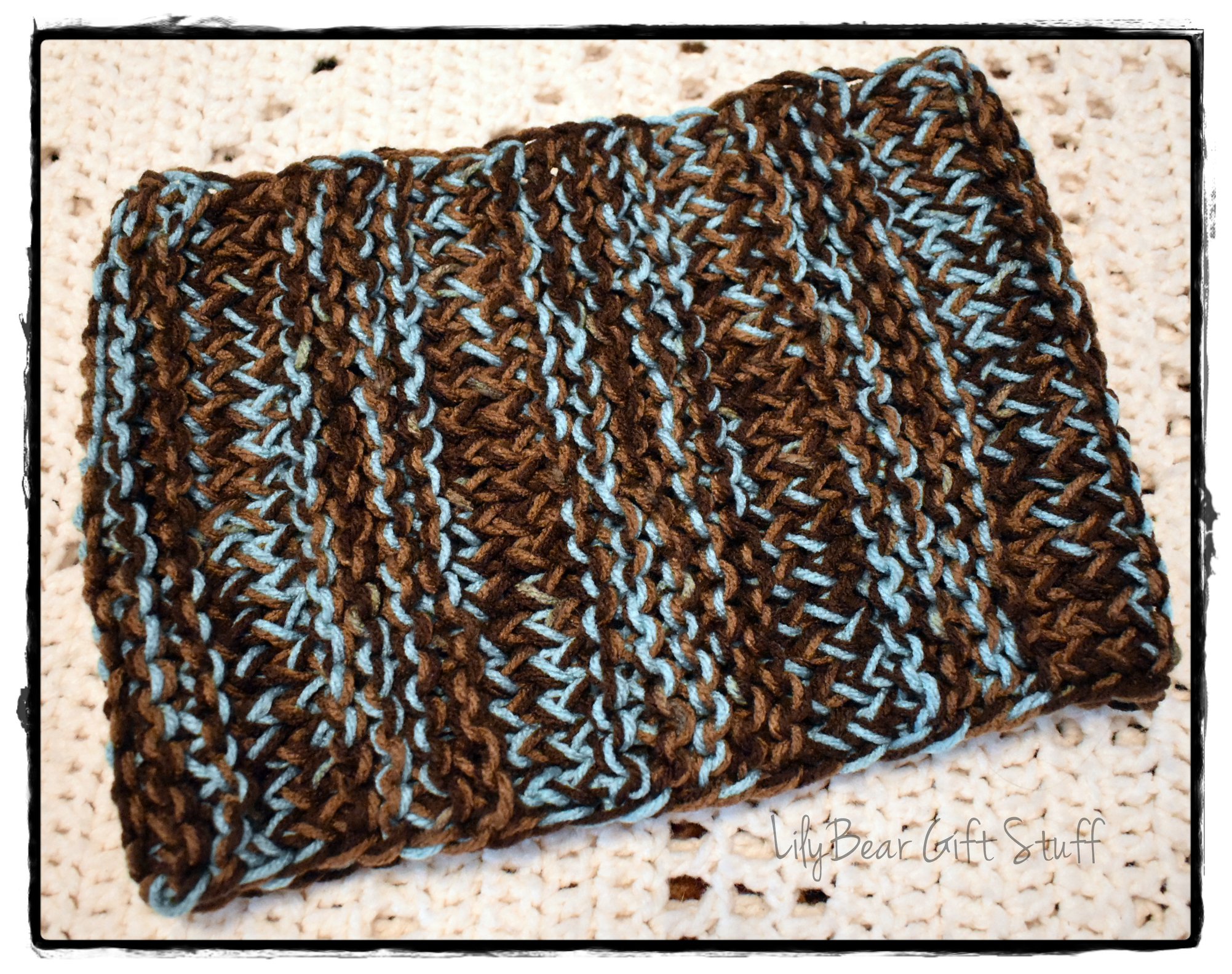 Very comfy and warm around the neck! this loom knit Cowl is an Adult/Teen size and comes in a blue and brown colors. It will keep your neck and chin cozy!