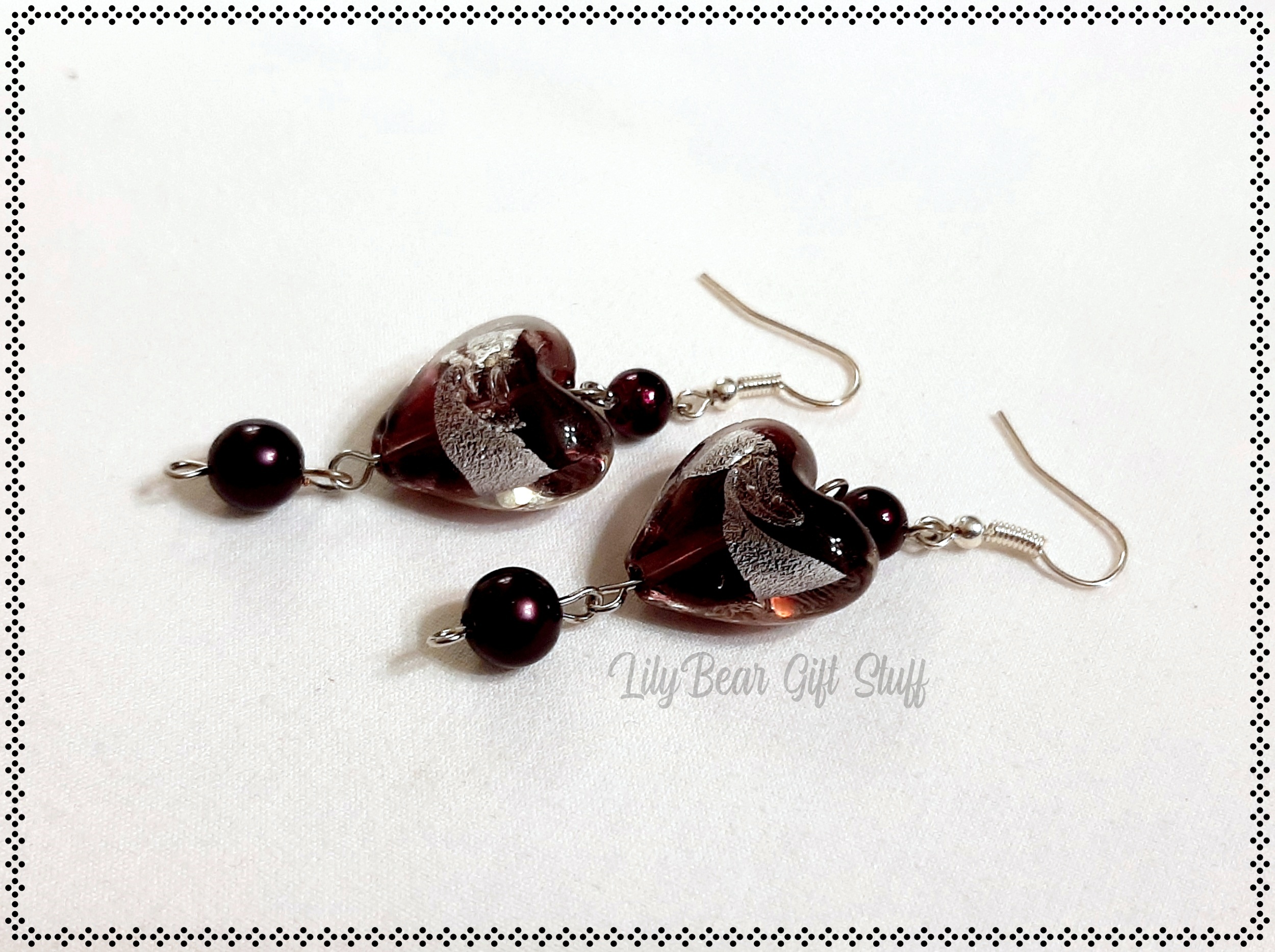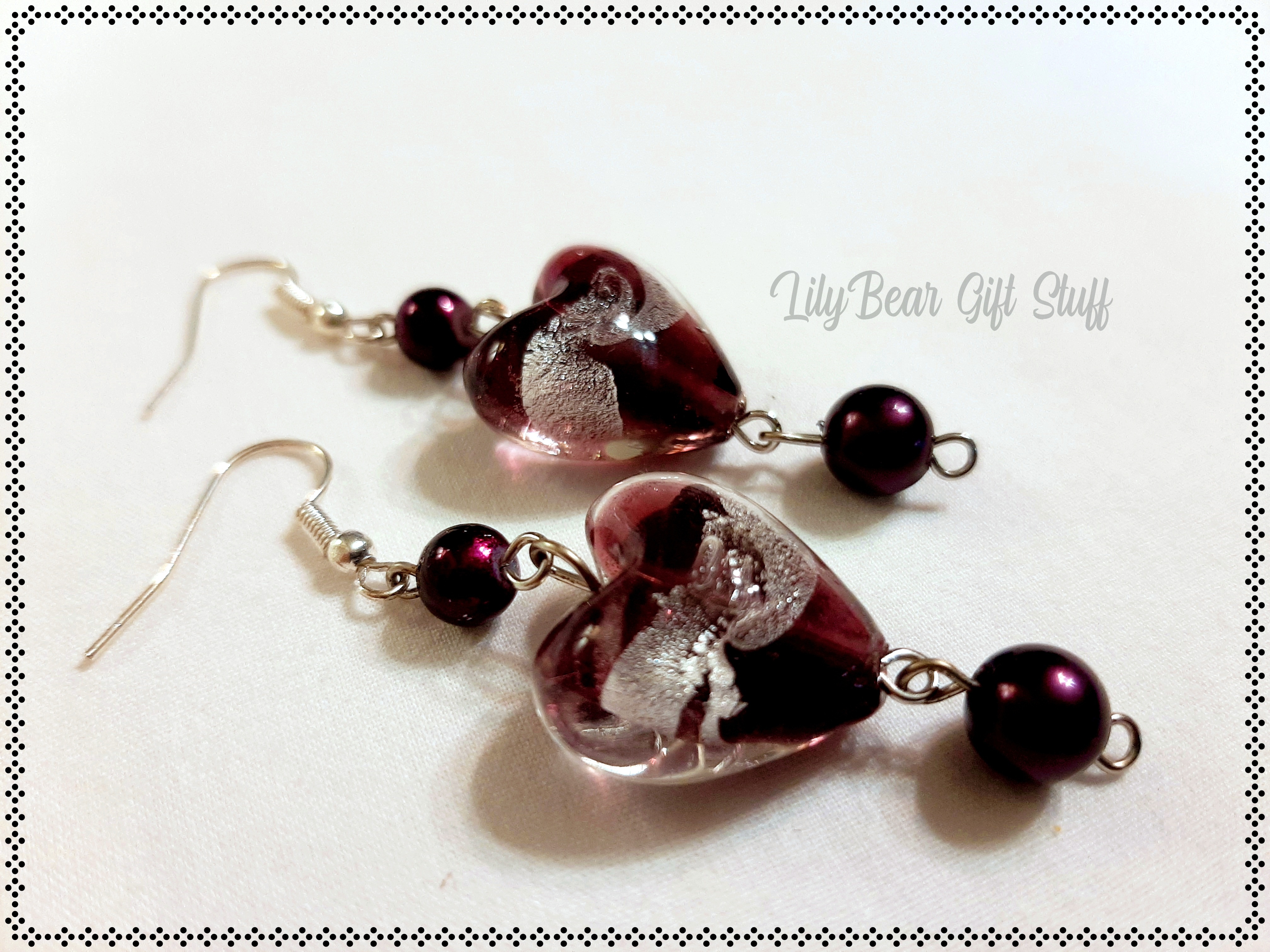 Cute and simple earrings made with purple glass beads and purple pearl bead.