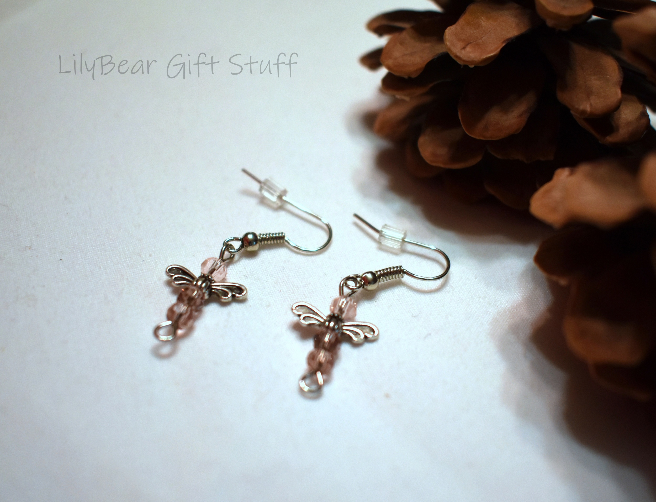 Cute and simple earrings made with tiny purple crystals with silver dragonfly wings